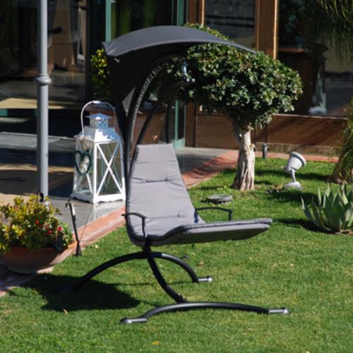 Hamac suspendu chaise berçante structure en fer avec pare-soleil gris