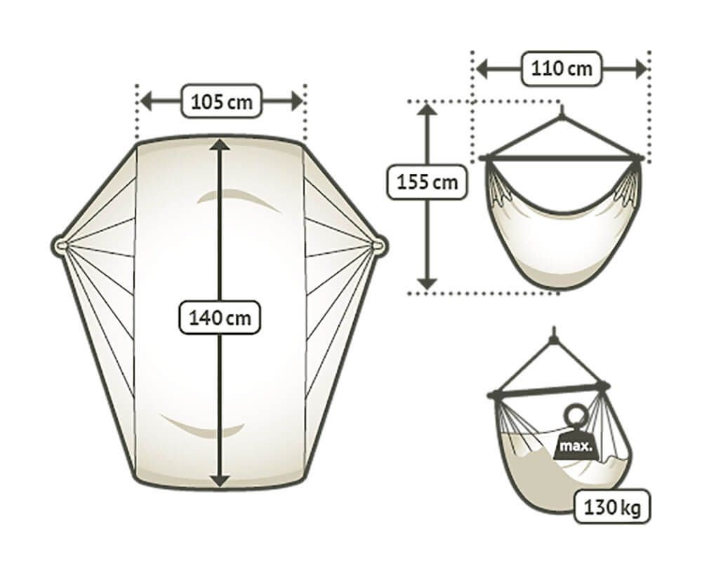 Spécifications techniques Chaise hamac suspendue en coton biologique La Siesta Modesta Blanc Lait