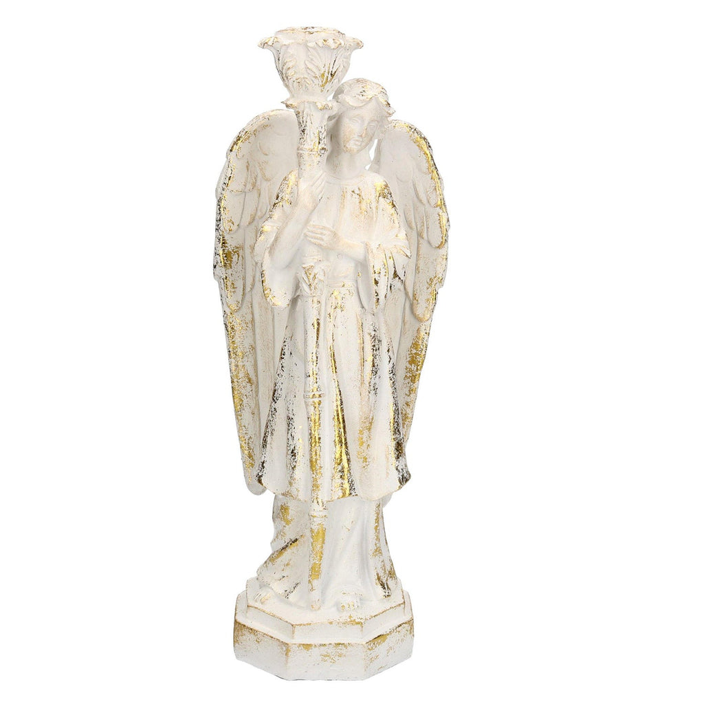 - Ange en résine or blanc avec lanterne 15x11xh40 cm