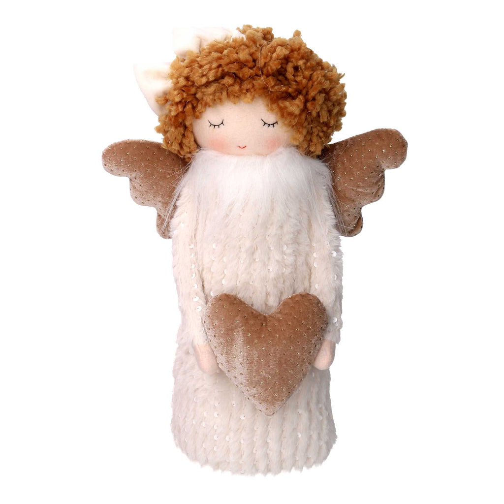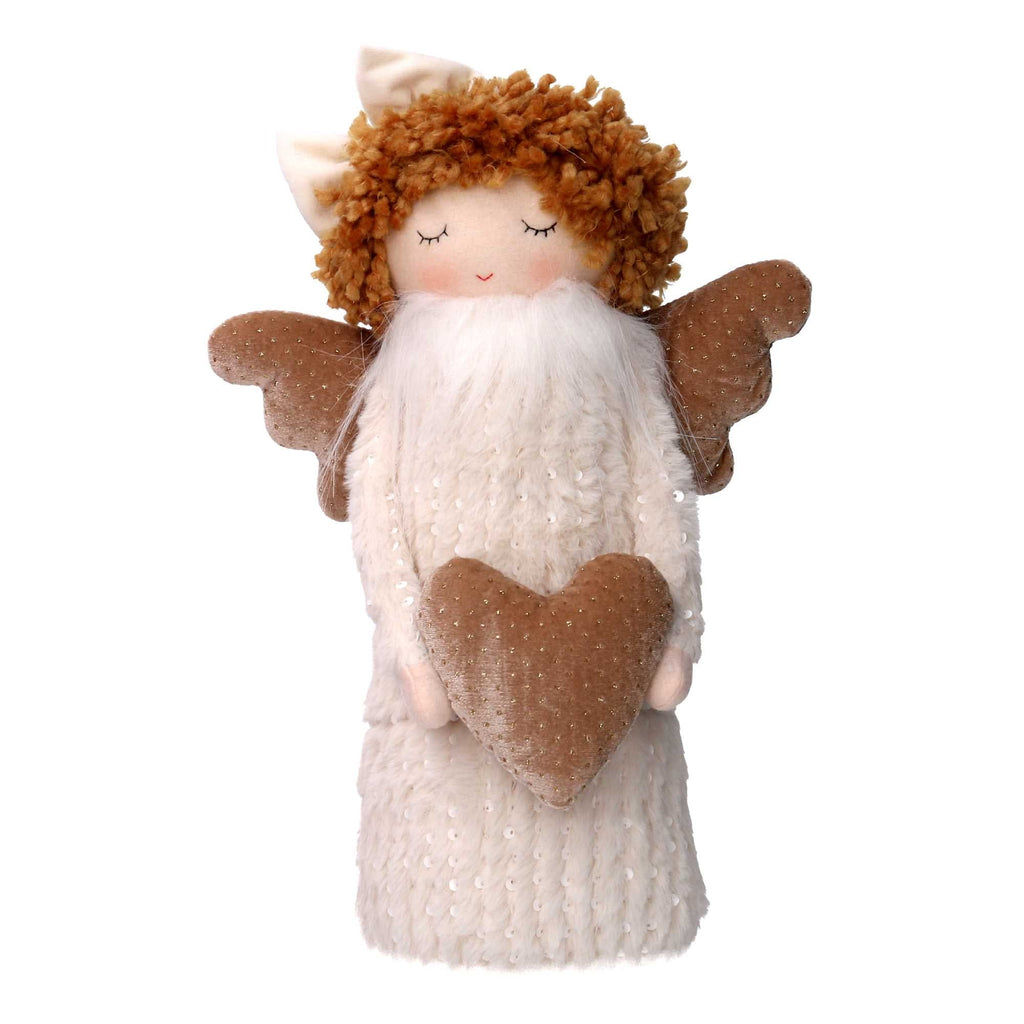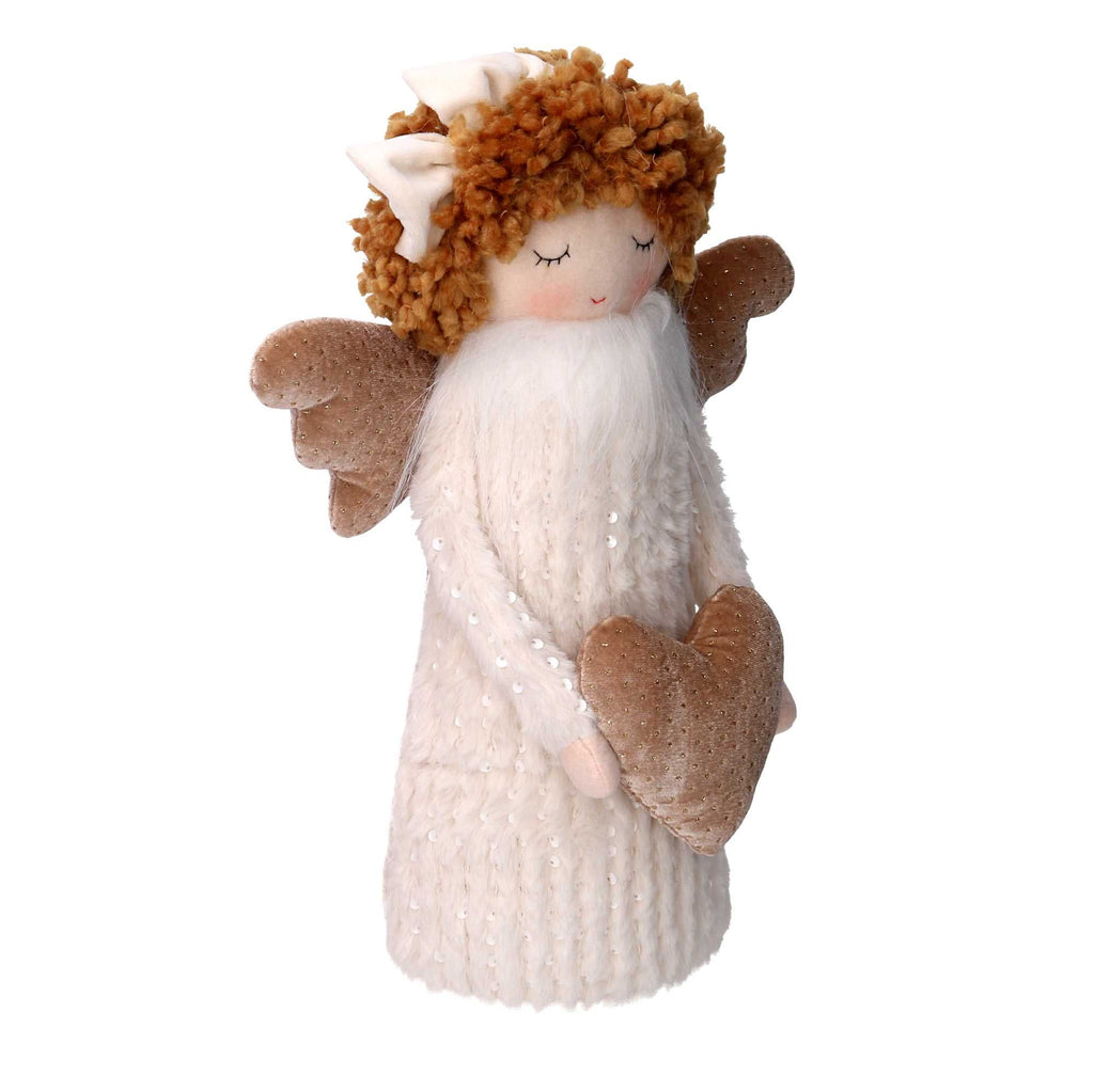 Angelo tessuto bianco con cuore cm 25x14xh38