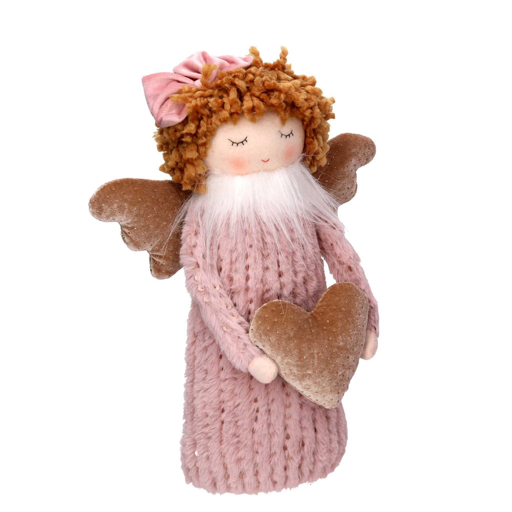 Angelo tessuto rosa con cuore cm 25x14xh38