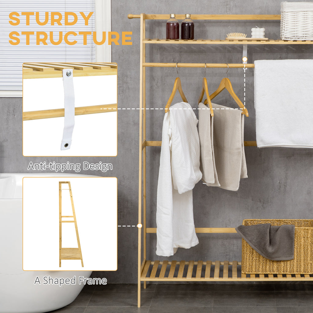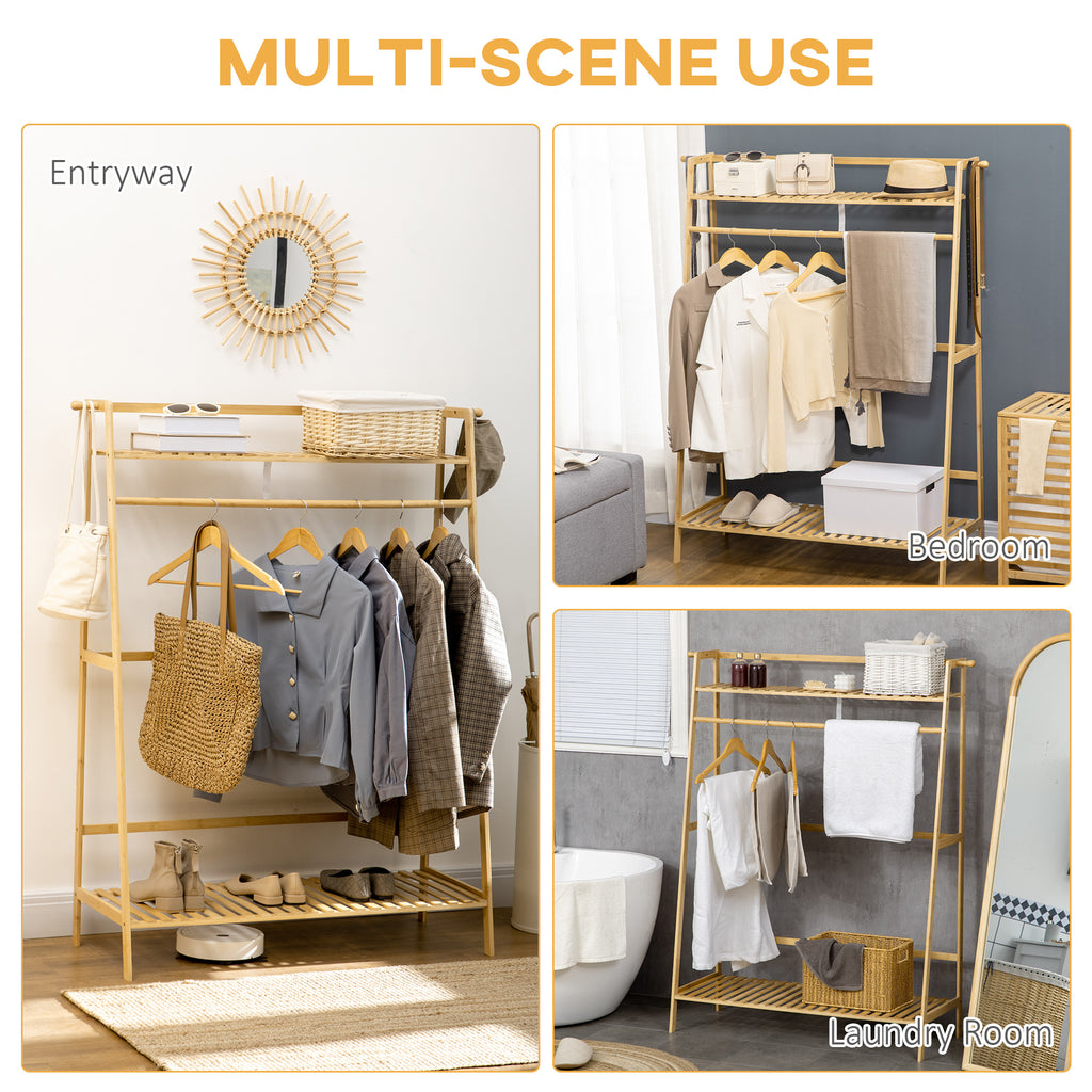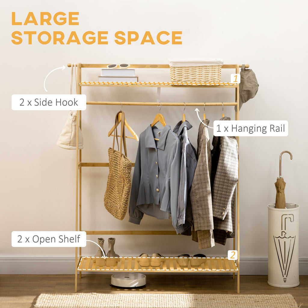 Appendiabiti 2 Ripiani 114x40x139 cm con Barra in Bambù Naturale