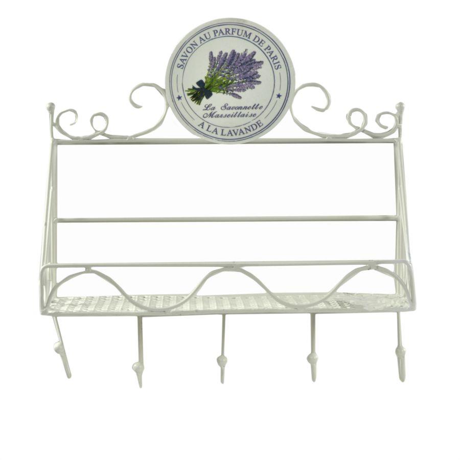 Appendiabiti a Muro 5 Ganci con Mensola 37,5x13xh37 cm in Metallo Bianco