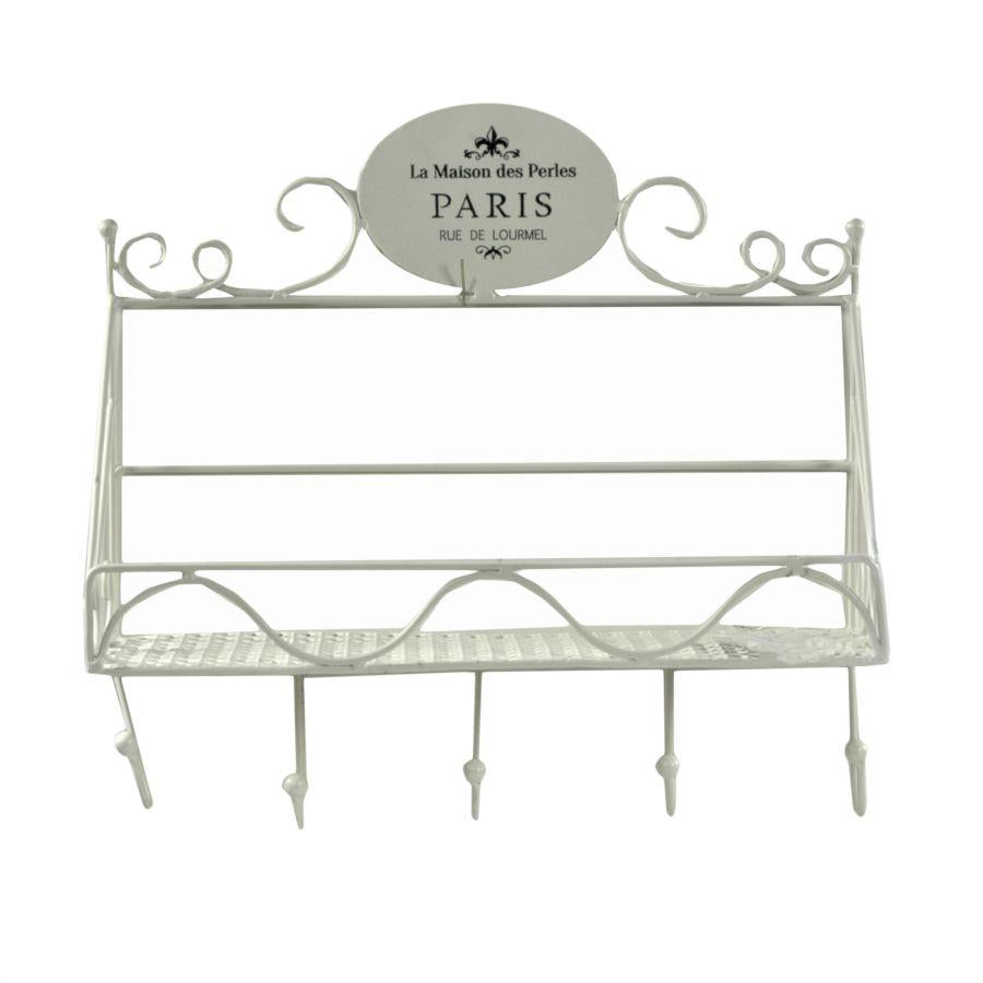 Appendiabiti a Muro 5 Ganci con Mensola 38,5x13xh37 cm in Metallo Paris Bianco