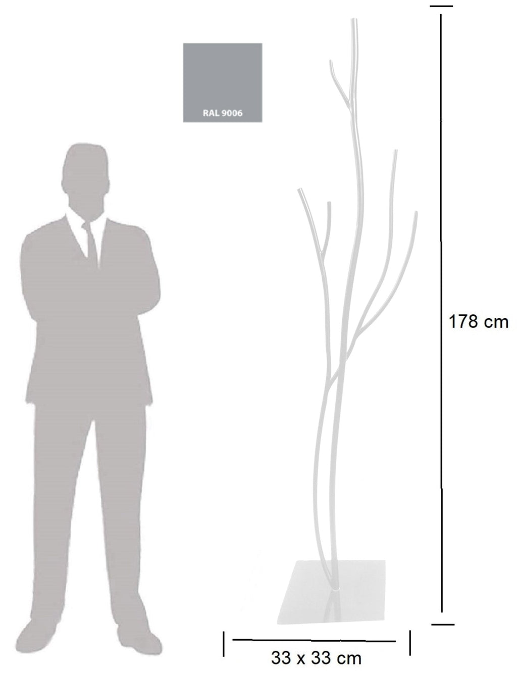 Portemanteau de sol 33x33x178 cm en fer forgé Vasconi châtaignier argent