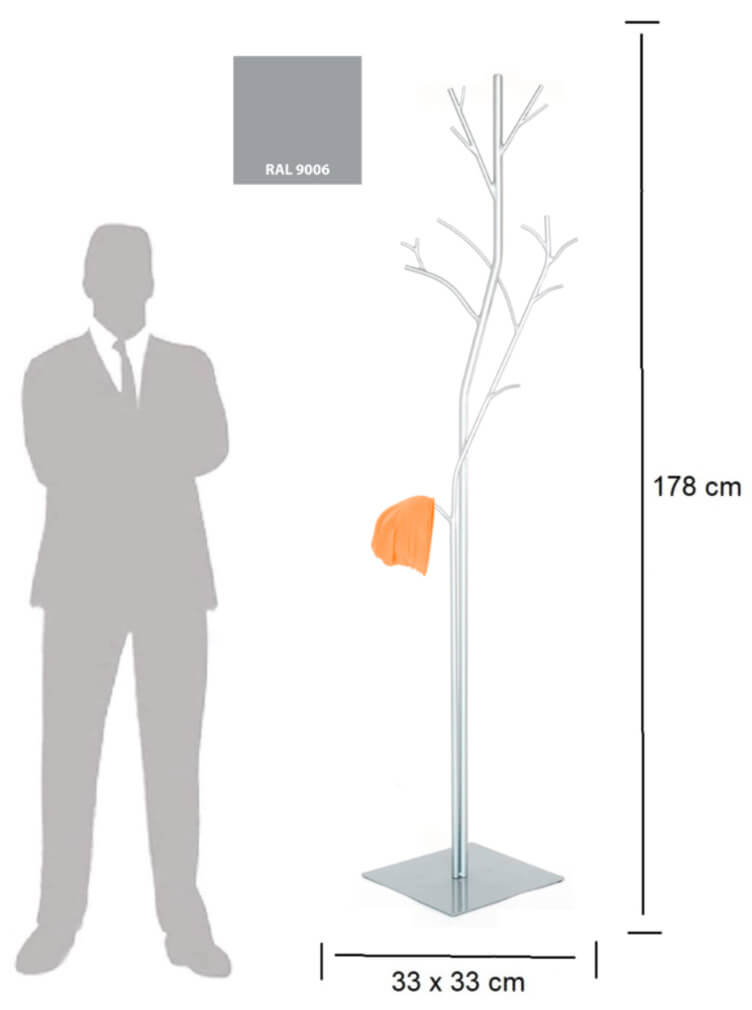 Portemanteau de sol 33x33x178 cm en fer forgé Vasconi Platano argent