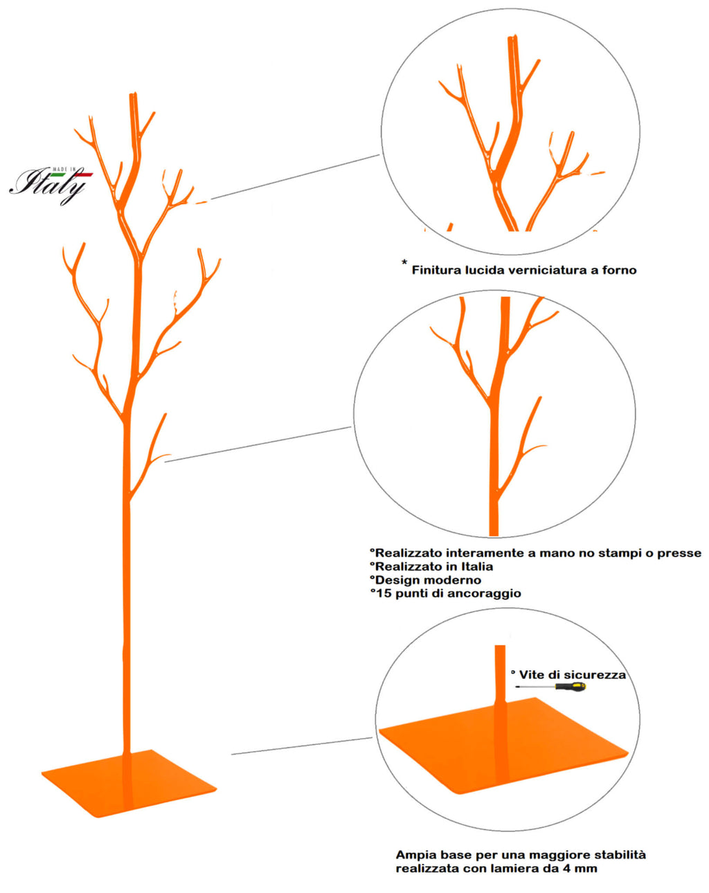 Portemanteau de sol 33x33x178 cm en fer forgé Vasconi Salice Orange
