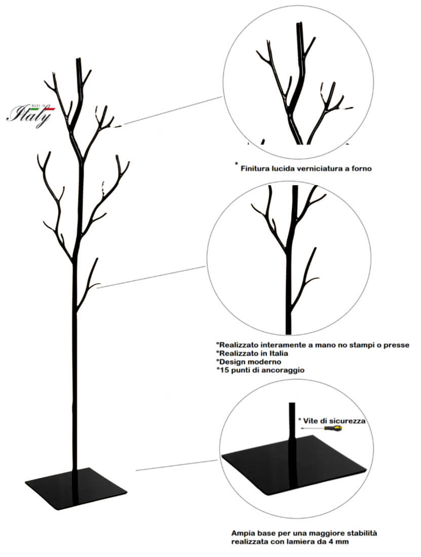 Portemanteau de sol 33x33x178 cm en fer forgé Vasconi Salice noir