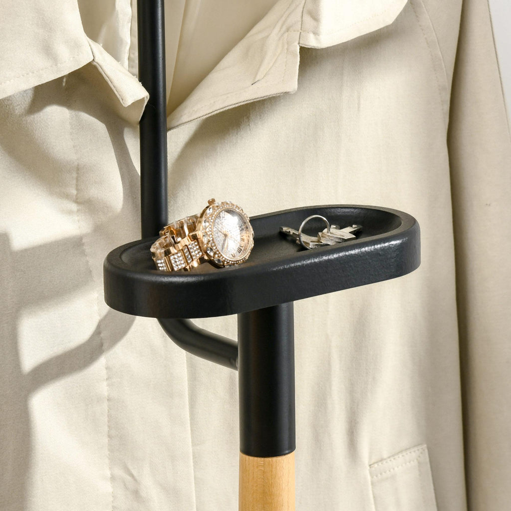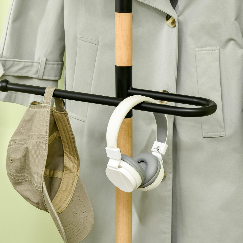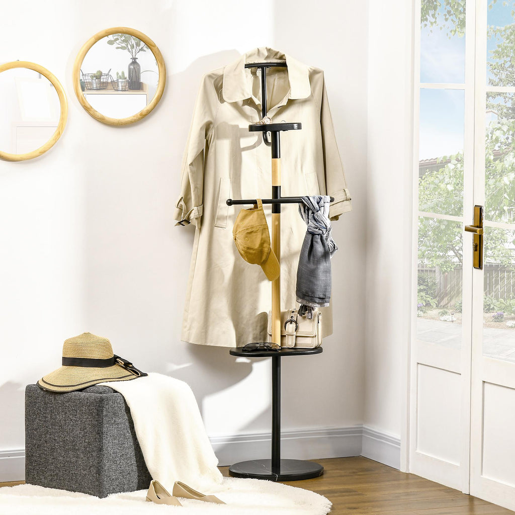 Porte-Manteau 46x35x152 cm en Bois et Acier avec Étagère et Cintre Noir