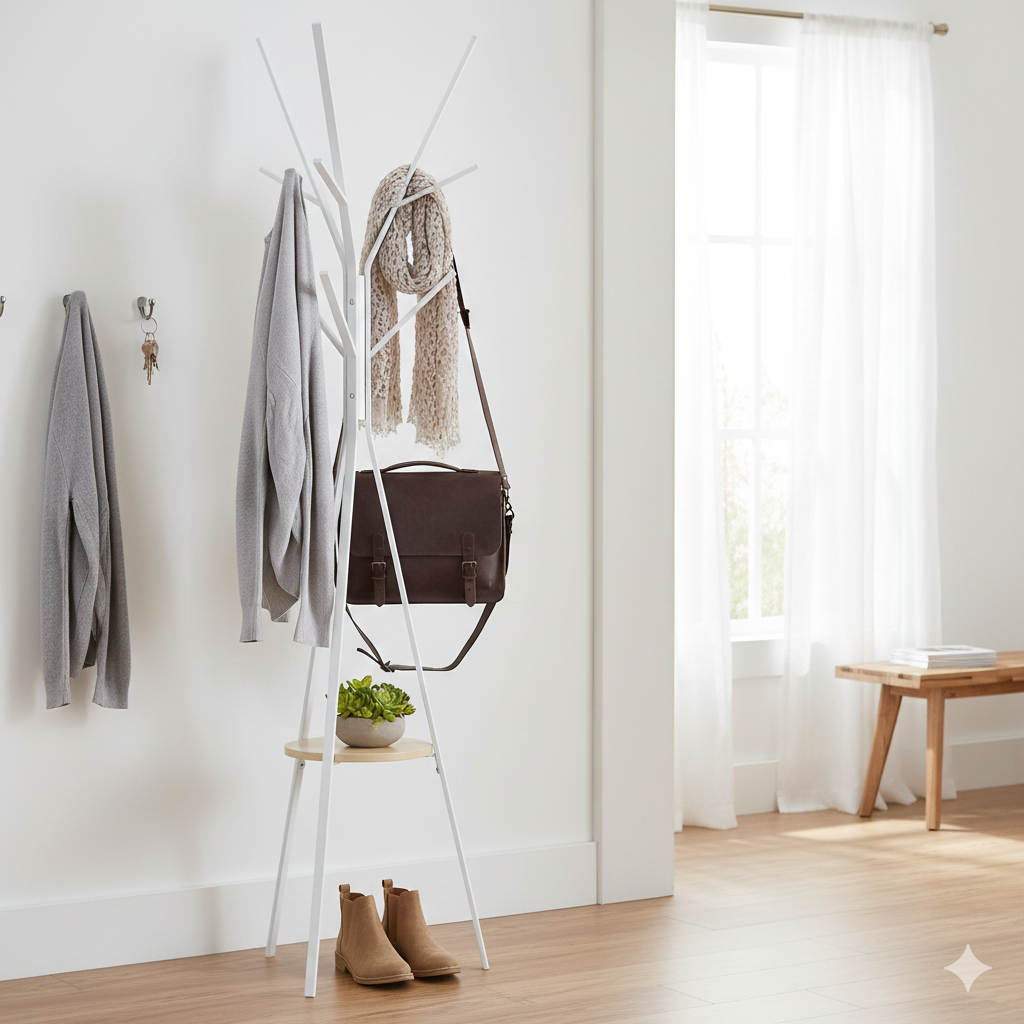 - 3 branches principales avec 9 crochets pour manteaux, sacs à main, foulards, vestes et plus encore.