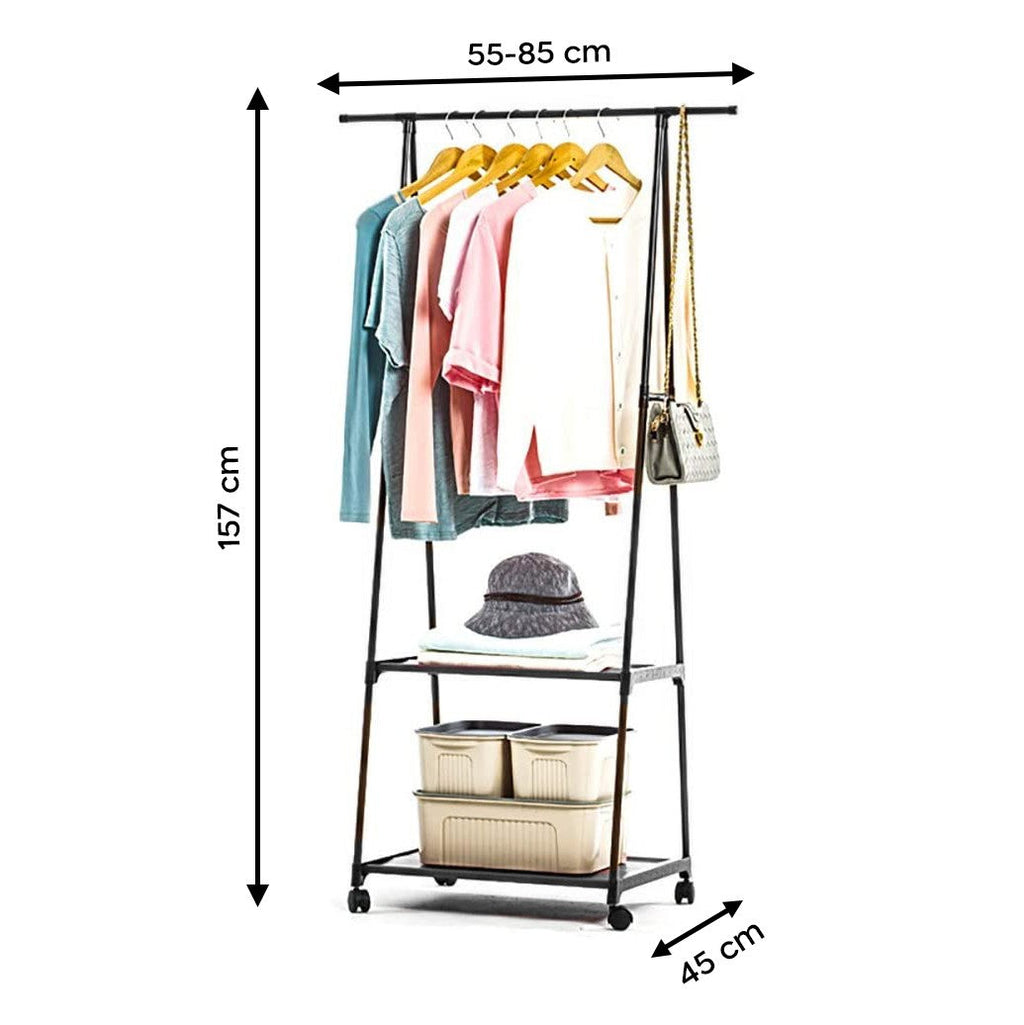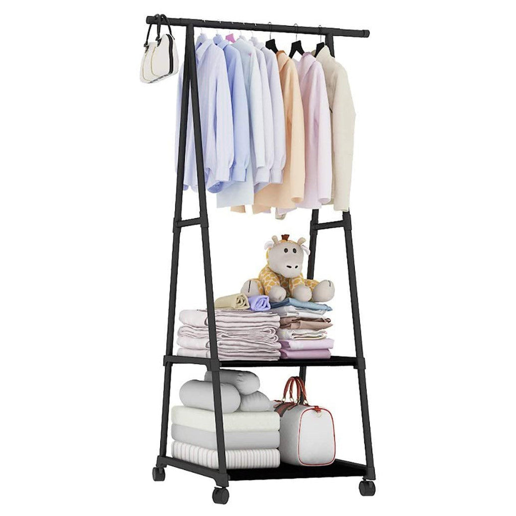 Porte-manteau sur pied avec étagère à chaussures de rangement en acier avec roues