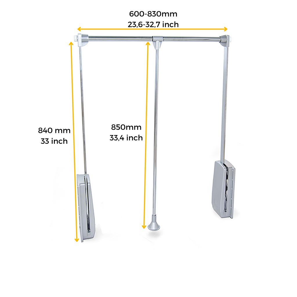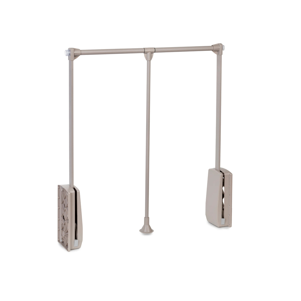 Le cintre d'armoire Hang vous permet d'accéder sans effort aux zones les plus hautes de l'armoire. La barre est réglable en largeur pour s'adapter au compartiment utile de l'armoire, en plus d'avoir un mouvement fluide avec retour amorti, elle a une capacité de charge maximale de 12 kg. En cas d'installation sur une armoire à portes battantes, nous recommandons le montage avec les entretoises latérales Hang 7085025/7085013/7085017/7085049.