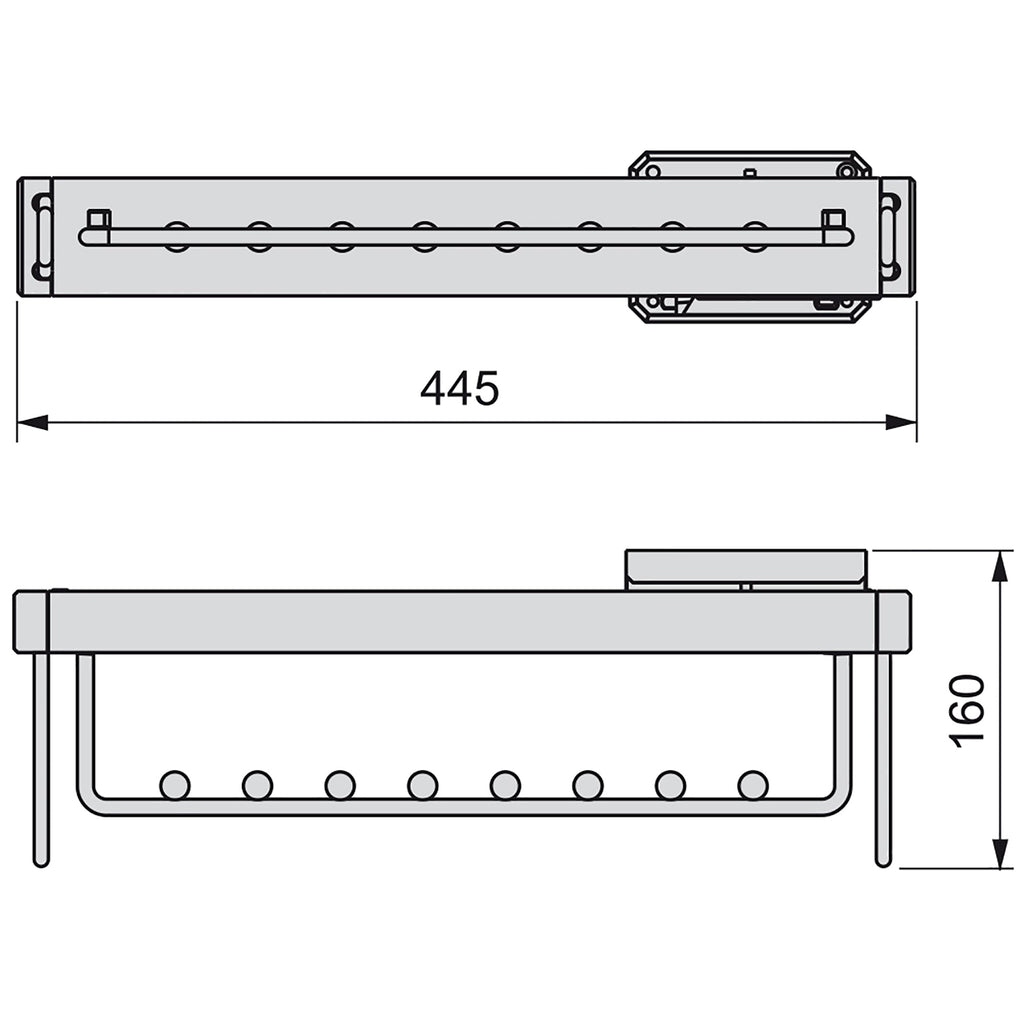 Le cintre extractible pour armoire Moka permet d'organiser efficacement l'espace intérieur des armoires et des dressings, en facilitant l'accès aux cintres. Il est produit en aluminium avec une finition peinte moka et comprend des guides de fermeture en douceur .