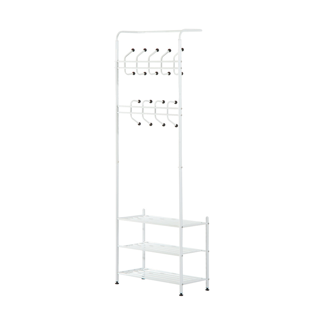 Banc Porte-Manteau avec Porte-Chaussures en Acier Blanc 67x30x185 cm