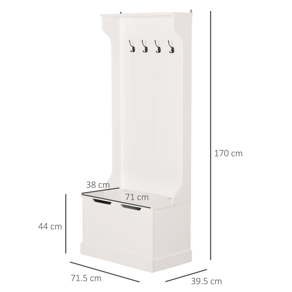 Banc porte-manteau pour entrée en MDF 71,5x39,5x170 cm Blanc