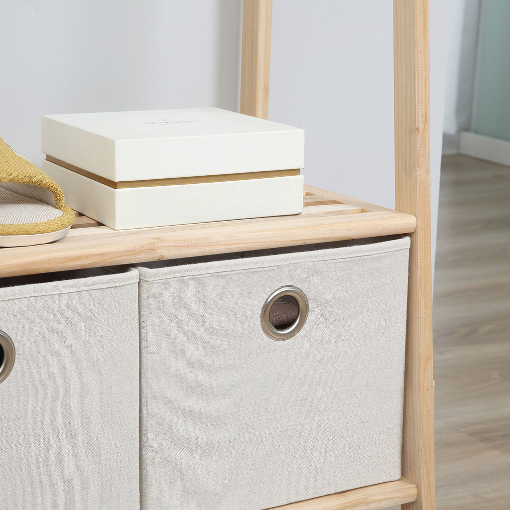 - 2 tiroirs en tissu et 3 étagères pour ranger chaussures, boîtes, décorations, etc.