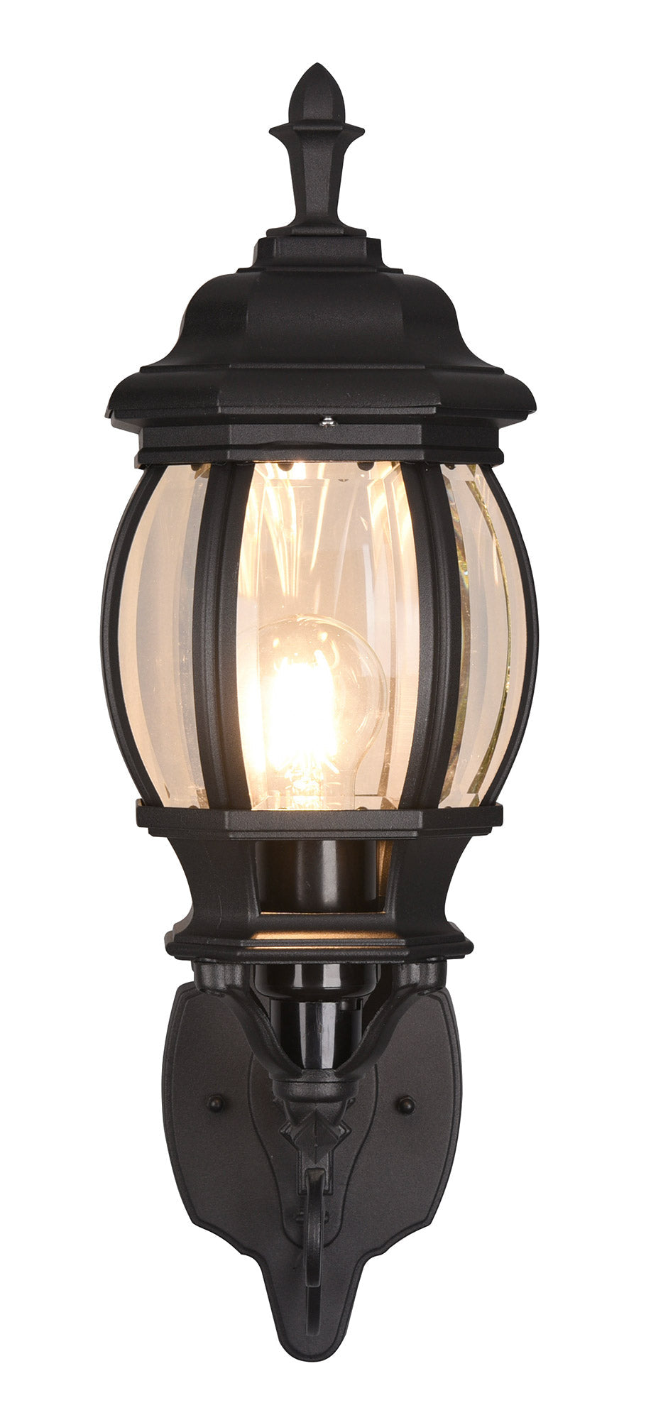 Elvo Applique Da Esterno Up Bombata Fusione di Alluminio Nera e Vetro Trasparente H. 49Cm Ip44