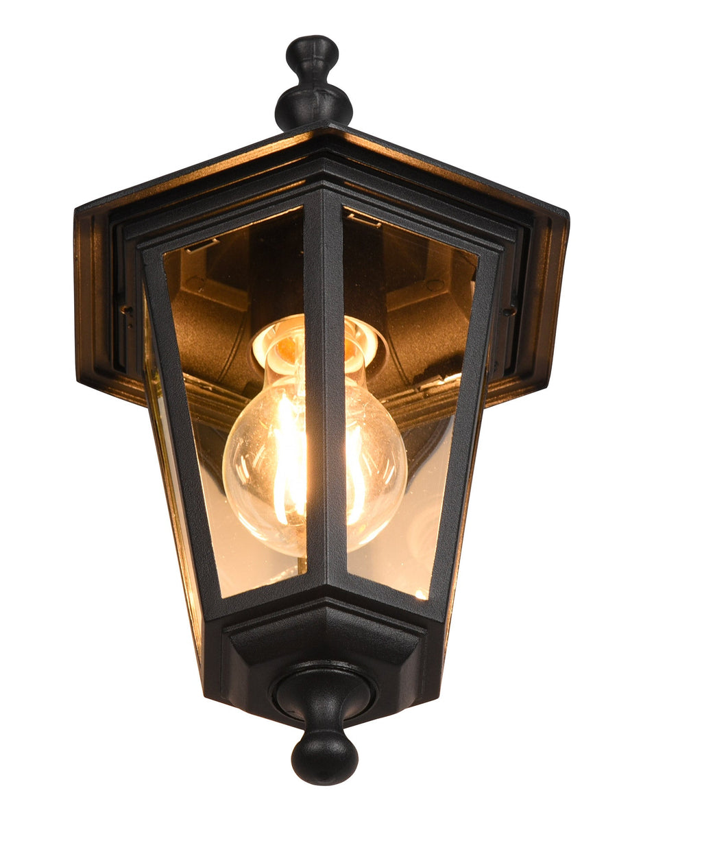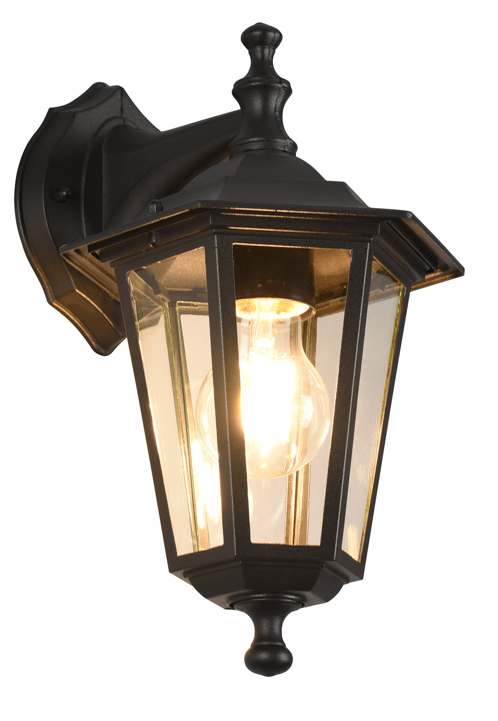 Pienza Applique Da Esterno Down 6 Lati Fusione di Alluminio Nera e Vetro Trasparente H. 31Cm Ip44