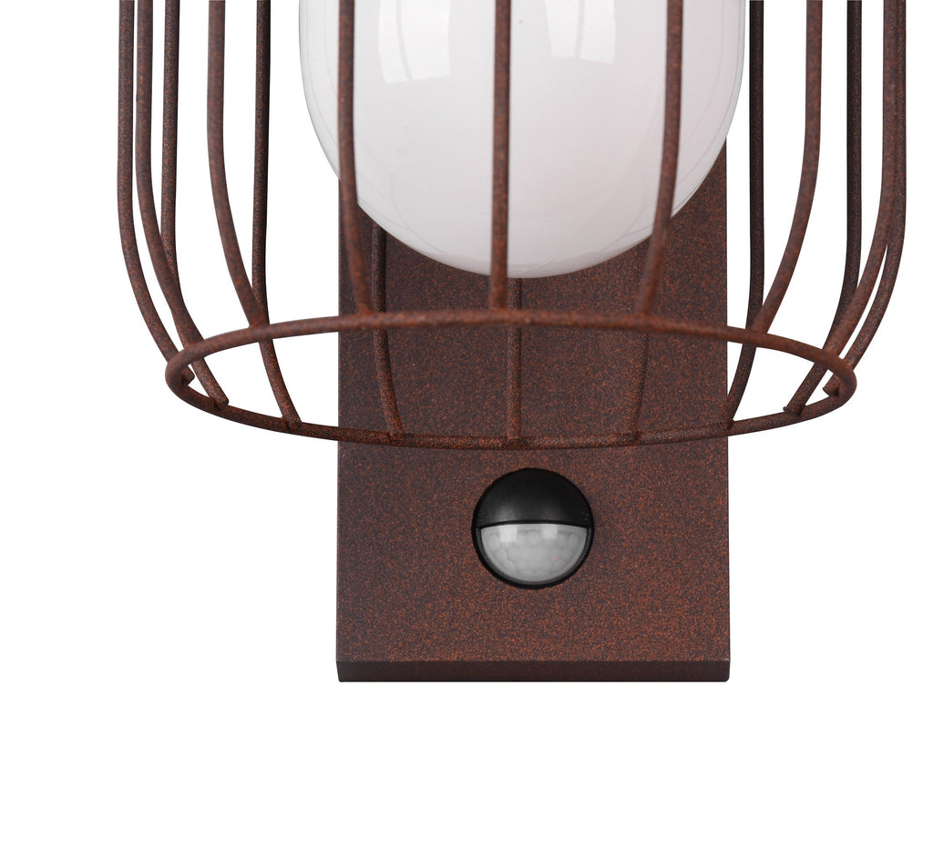 Tuela Applique Da Esterno Ruggine con Gabbia Diffusore Bianco Ip44 con Sensore Movimento H. 28Cm