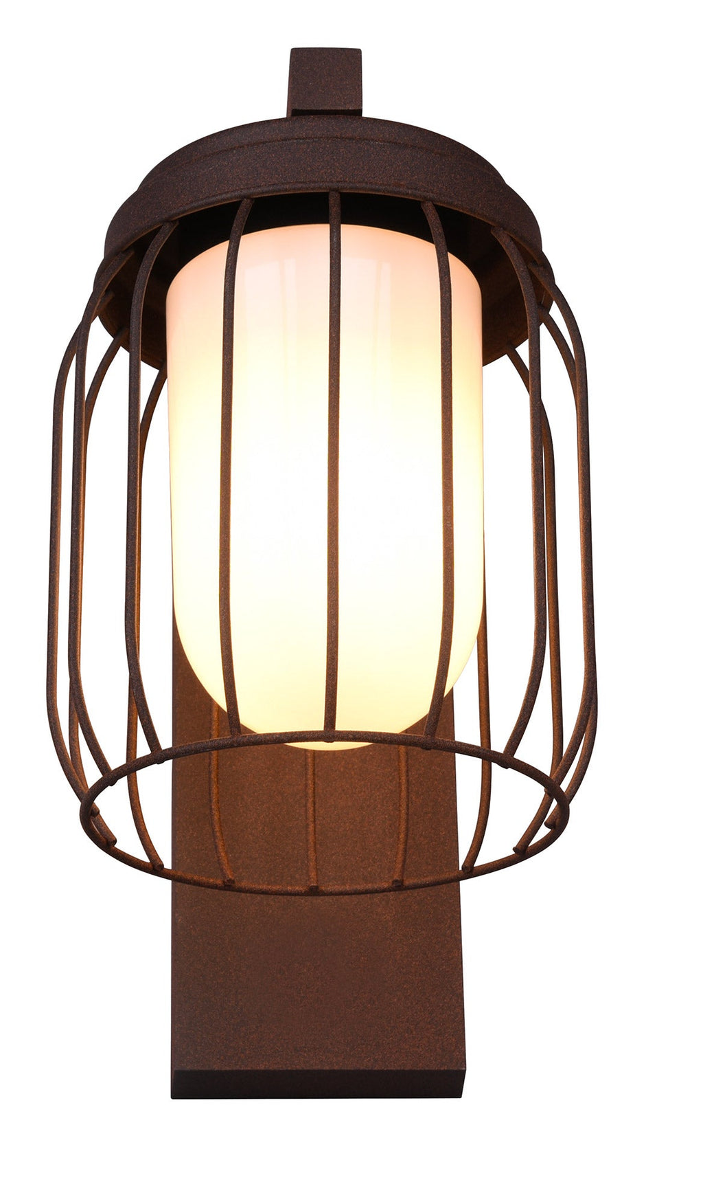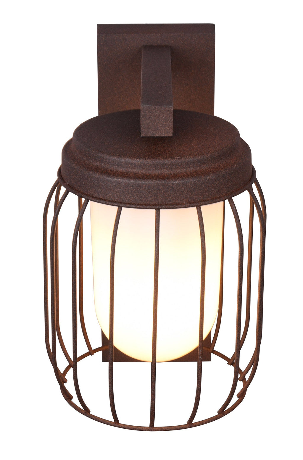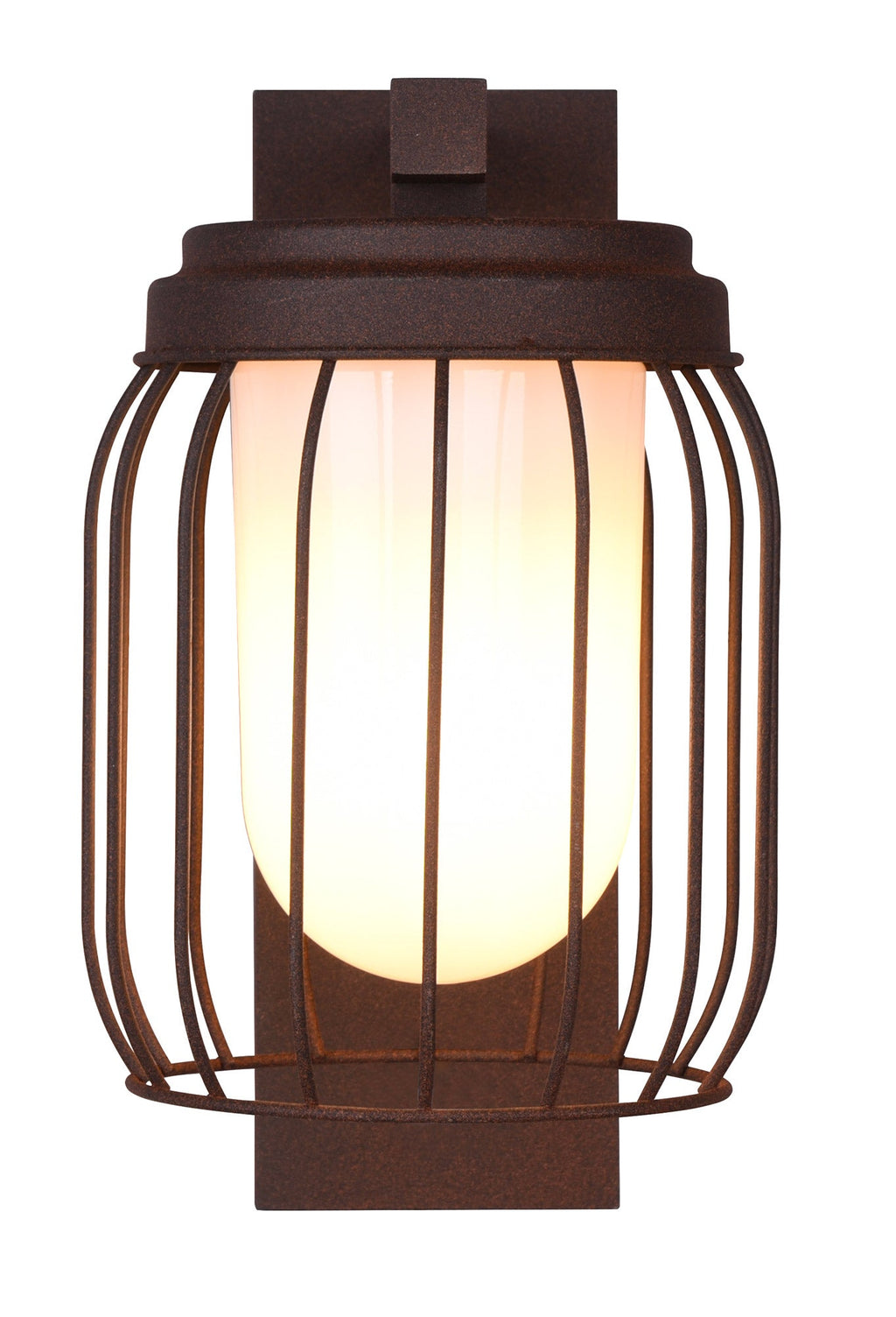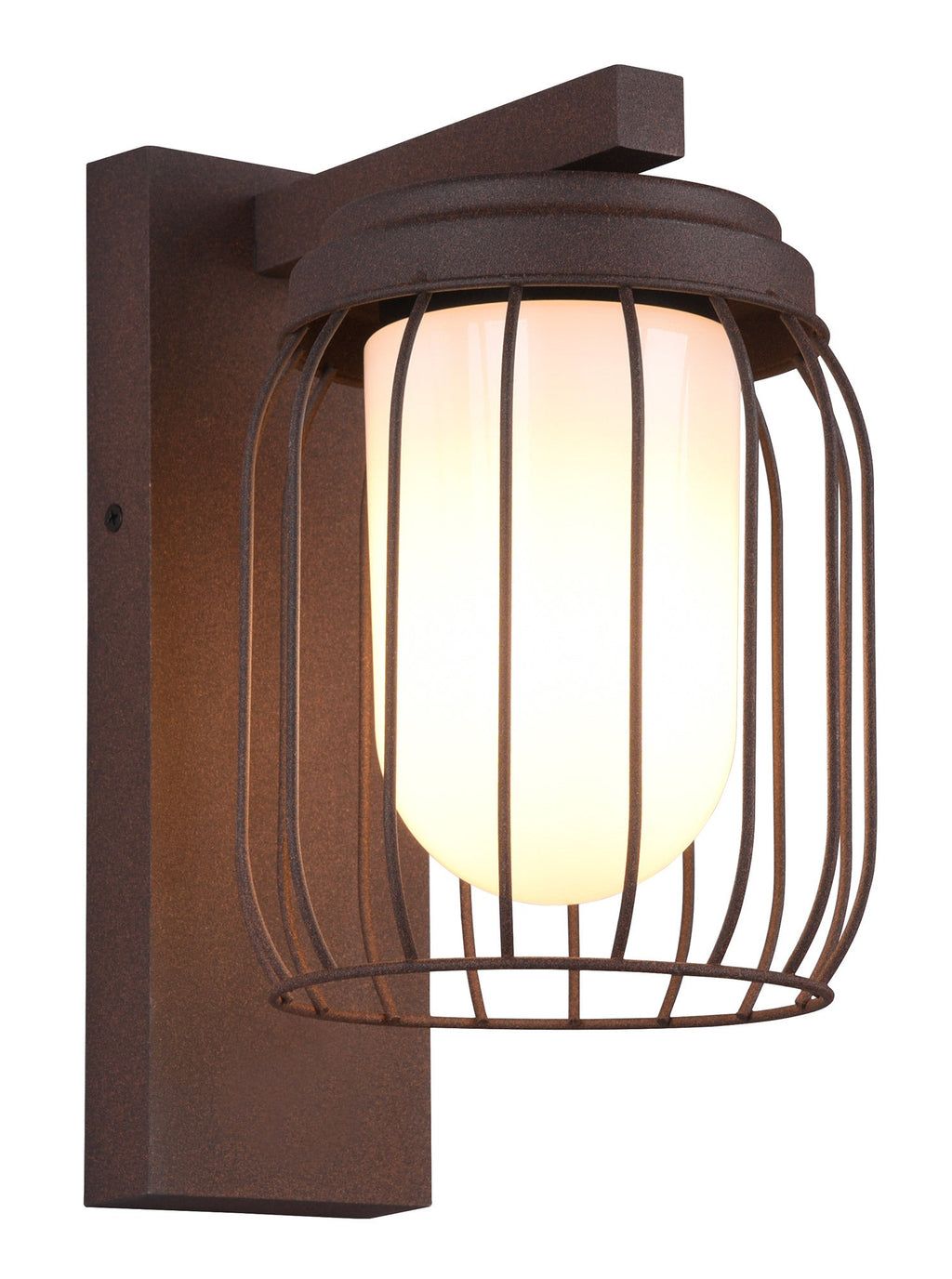 Tuela Applique Da Esterno Ruggine con Gabbia Diffusore Bianco Ip44 H. 28Cm