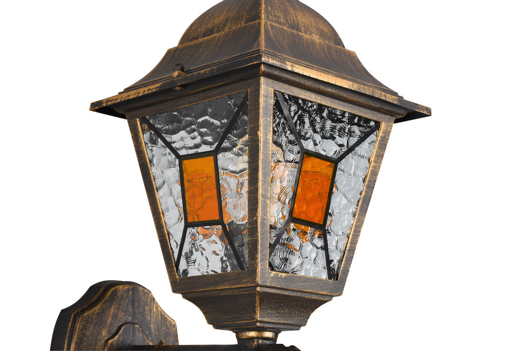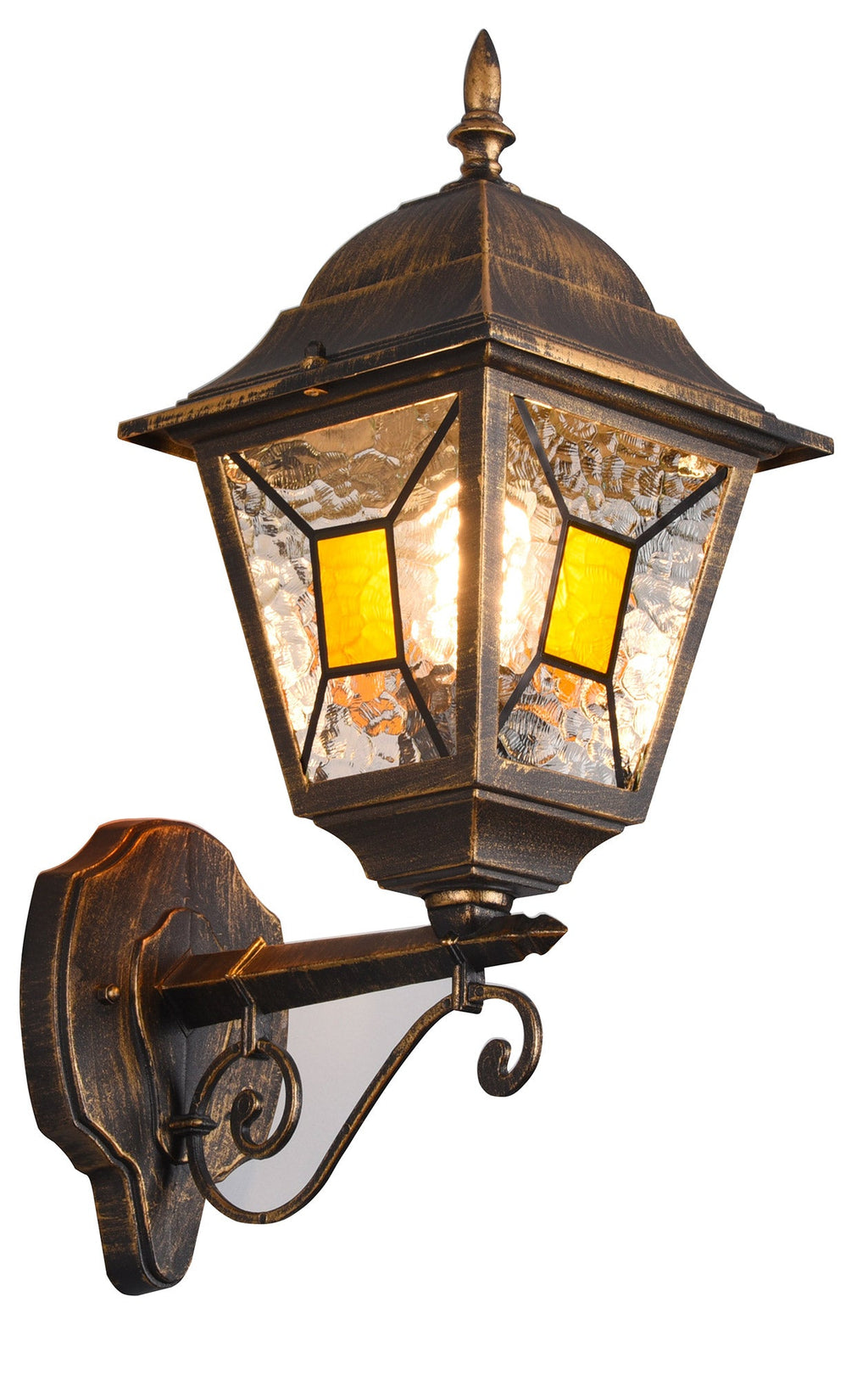Imperia Applique Da Esterno Up 4 Lati Fusione di Alluminio Ruggine e Vetro Verniciato Effetto Ghiaccio Ed Inserto Giallo H. 45,5Cm Ip44