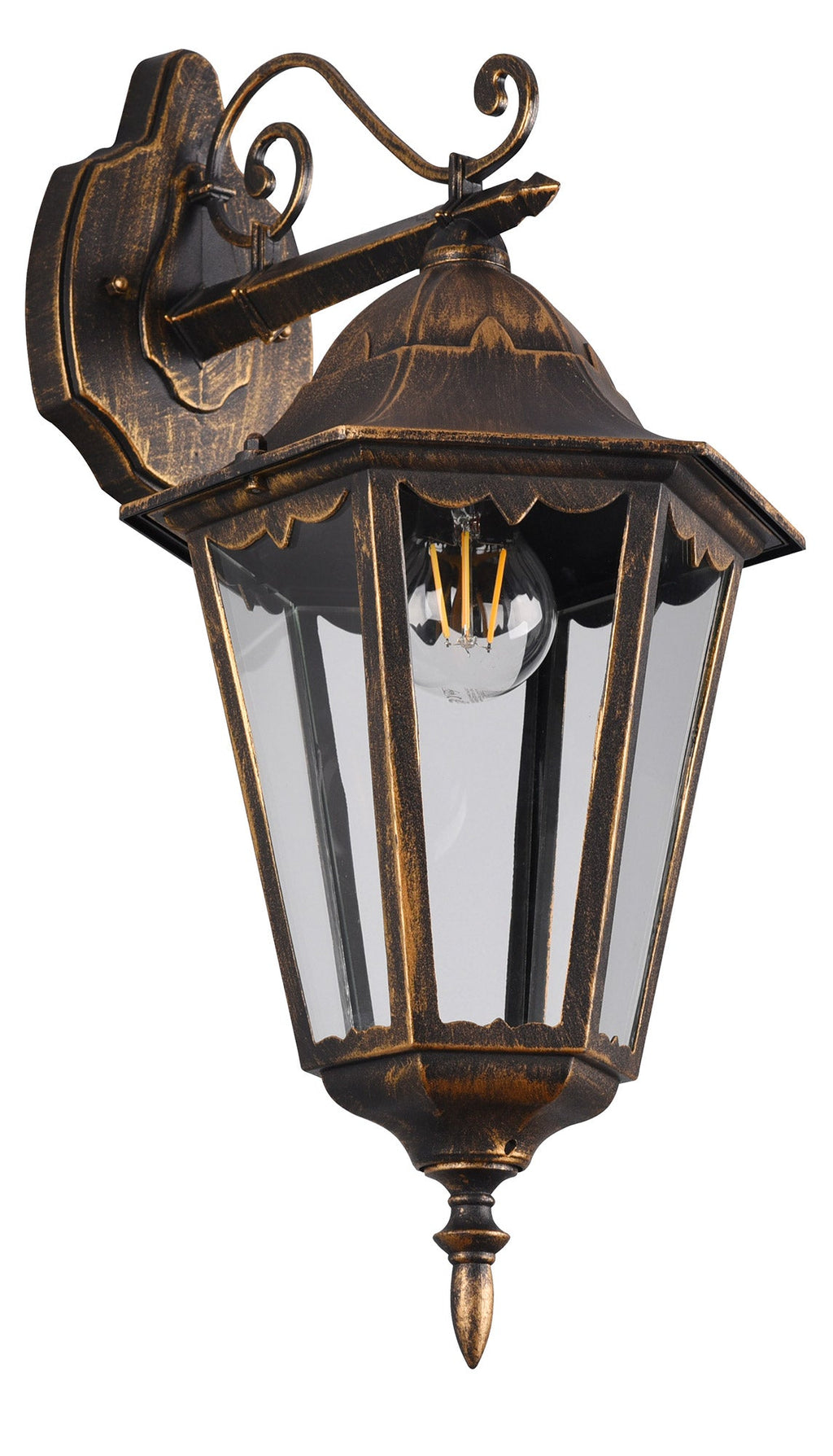 Mella Applique Da Esterno Down 6 Lati Fusione di Alluminio Ruggine e Vetro Trasparente H. 51Cm Ip44