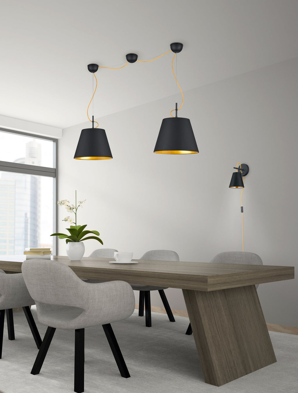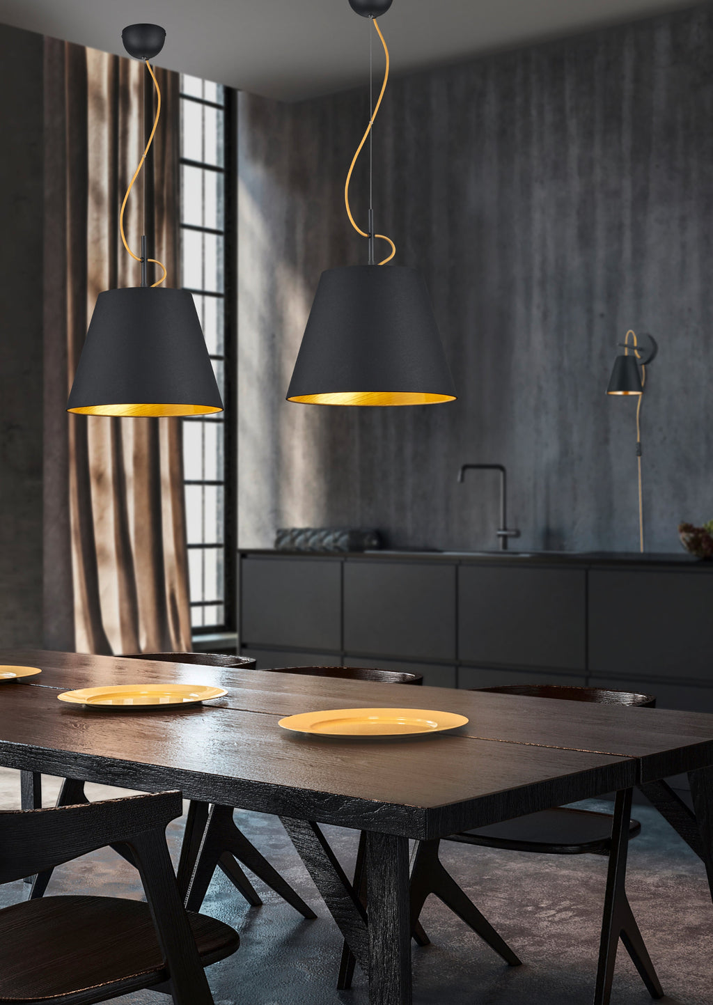 Andreus Applique Diffuseur Conique Tissu Externe Noir Interne Or D.15Cm, H.26,5Cm