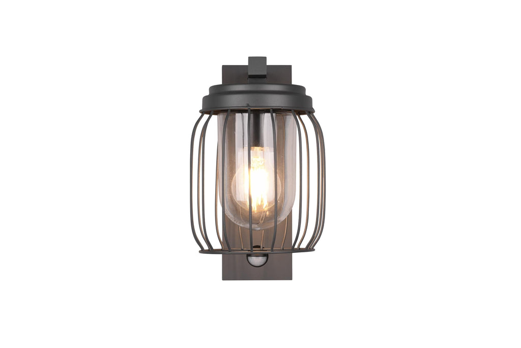 Applique d'Extérieur Tuela Anthracite Avec Cage Diffuseur Blanc Ip44 Avec Capteur De Mouvement H. 28Cm