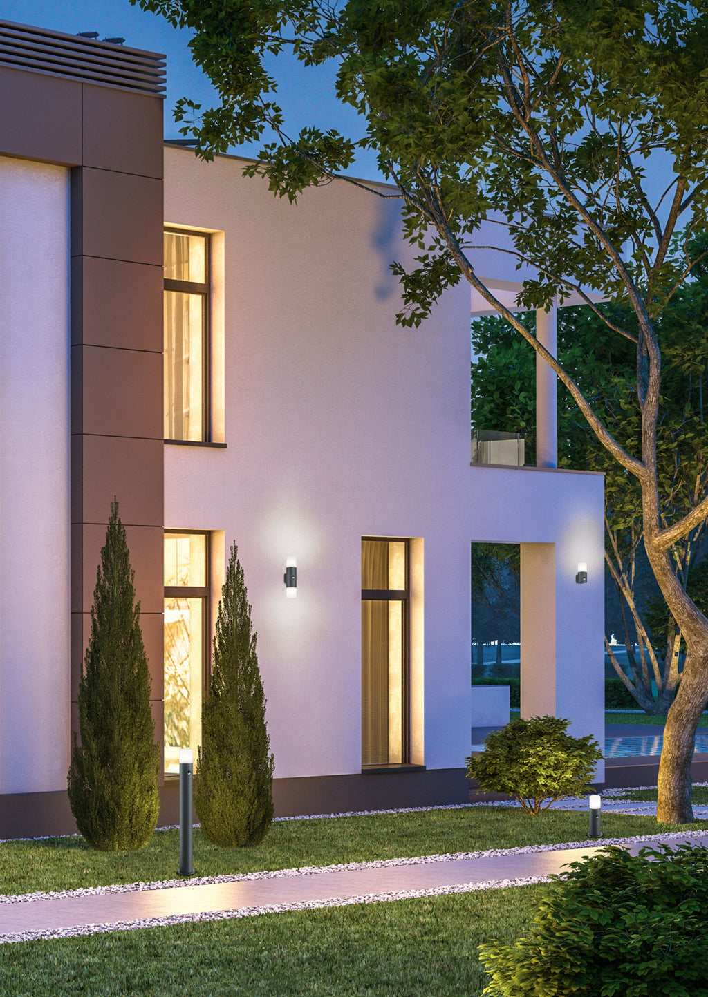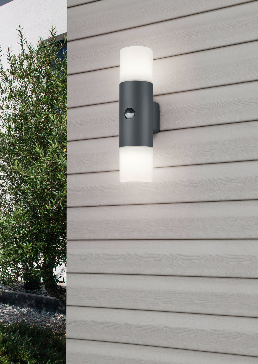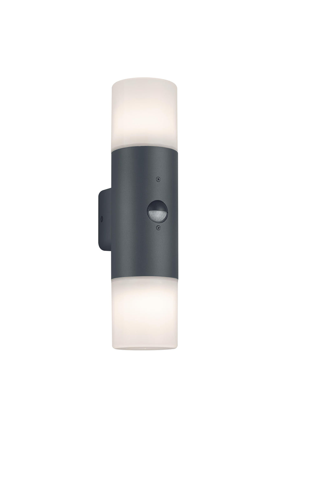 Applique Murale Led Hoosic Cylindre Anthracite Et Double Différentiel Blanc Avec Détecteur De Mouvement H.33 Cm