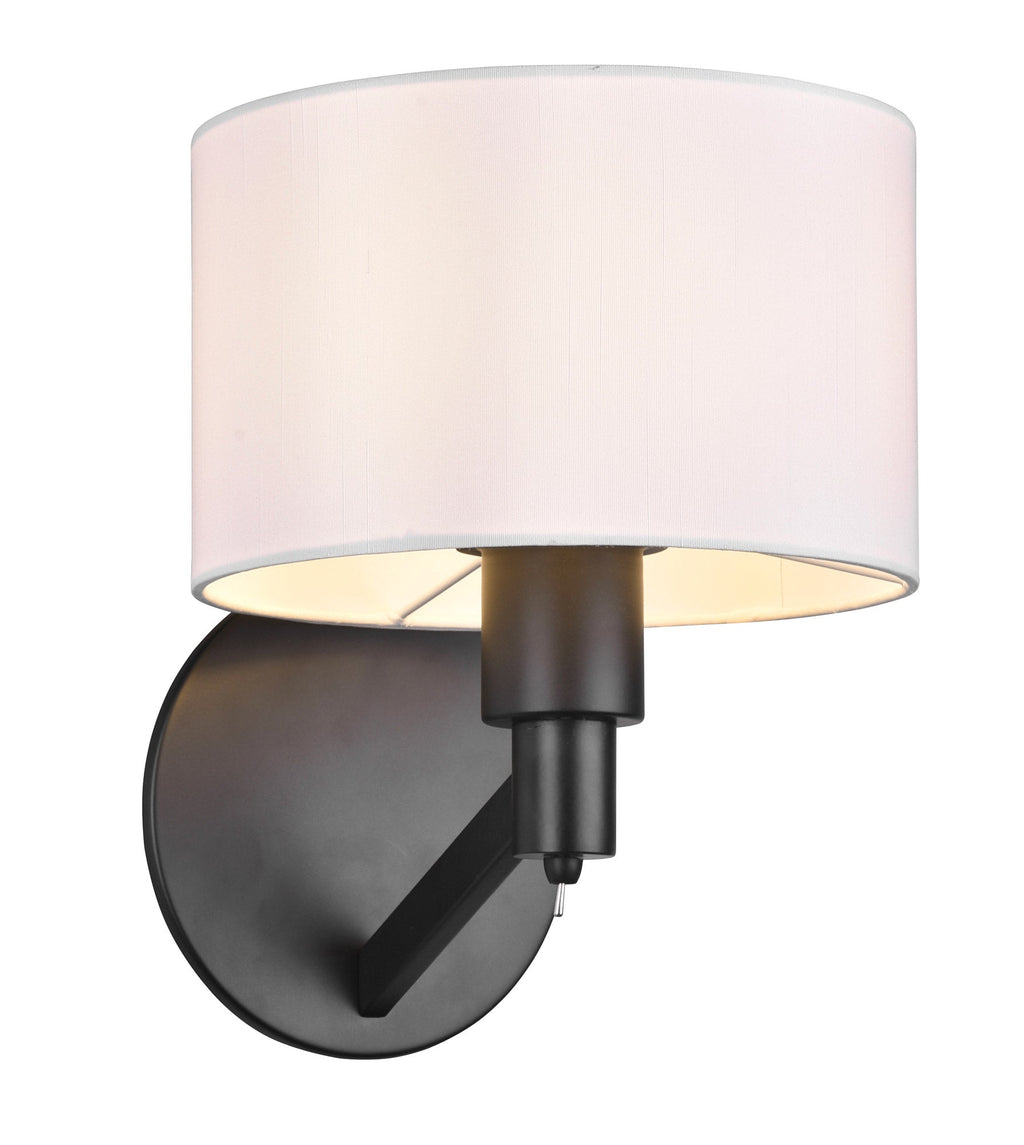 Cassio Applique Metallo Nero con Paralume Bianco Ed Interruttore H. 27,9Cm