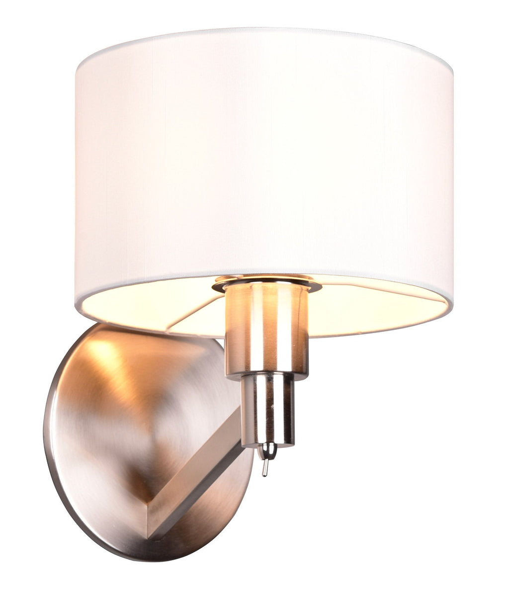 Cassio Applique Metallo Acciaio con Paralume Bianco Ed Interruttore H. 27,9Cm