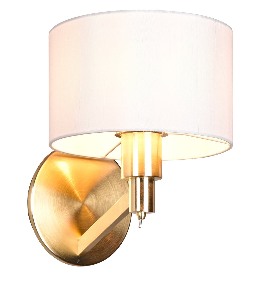 Cassio Applique Metallo Ottone con Paralume Bianco Ed Interruttore H. 27,9Cm