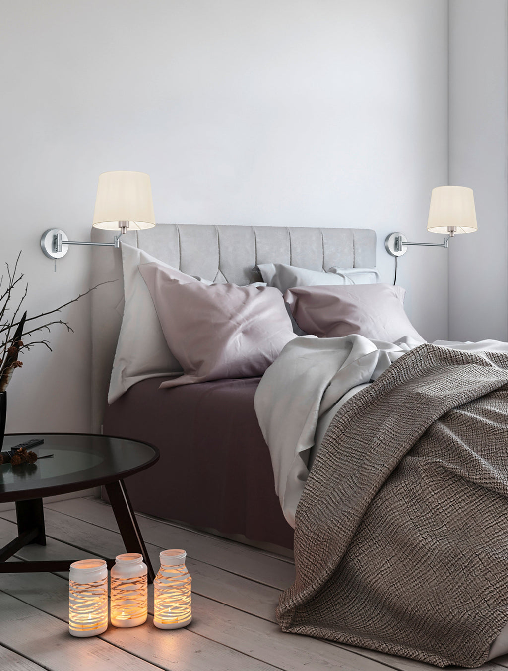 Applique Murale Lyon Double Articulation Acier Satiné Abat Jour Blanc L. 68.5Cm, D.25.5Cm