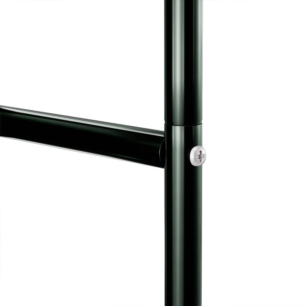Realizzato completamente in metallo con verniciatura a polvere. Ha una dimensione totale di 140cm di larghezza flessibili allungabile fino a 170cm. Una larghezza di 38 cm e altezza 240 cm.