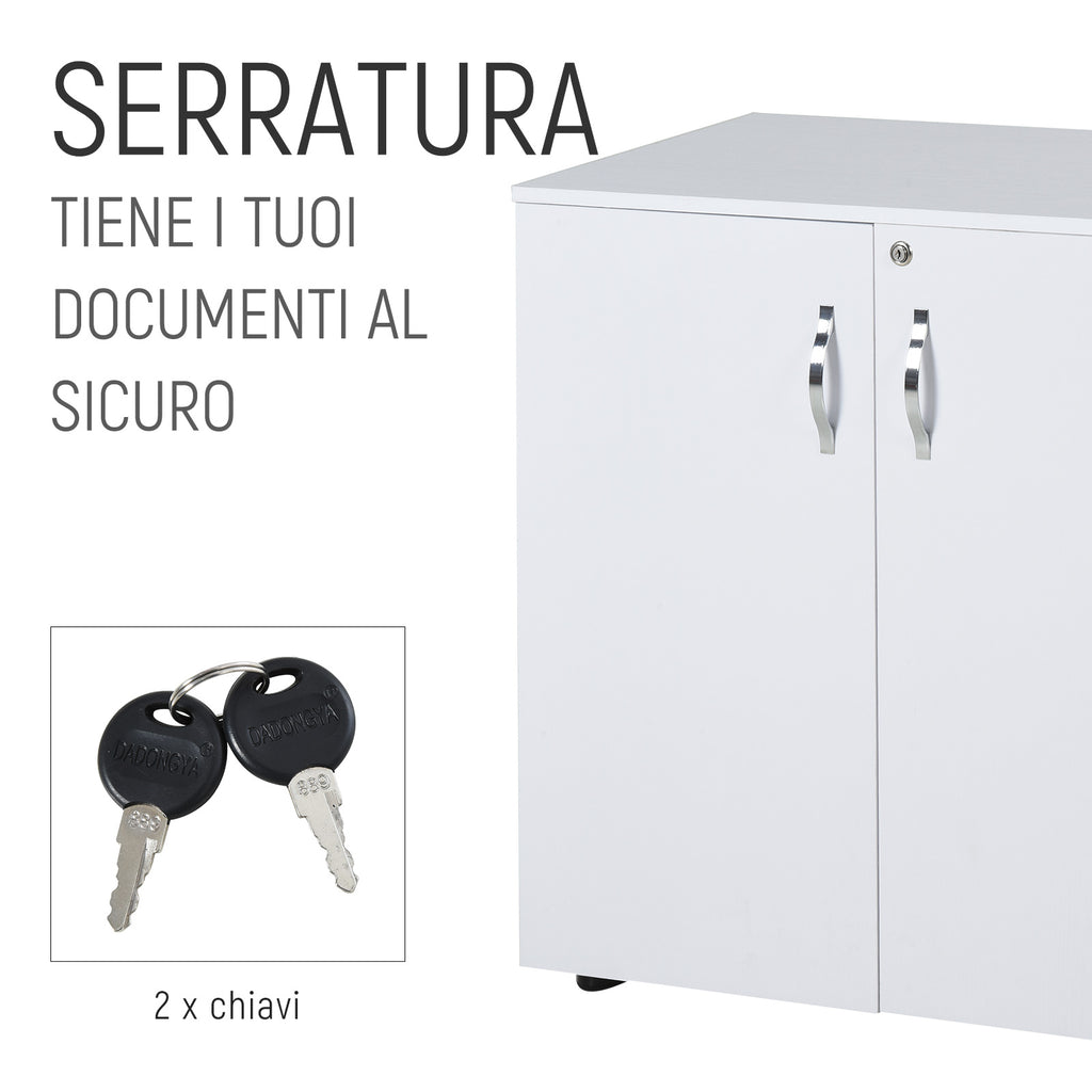 Armoire de Bureau Polyvalente 2 Portes avec Serrure 80x40x80 cm en Aggloméré Blanc