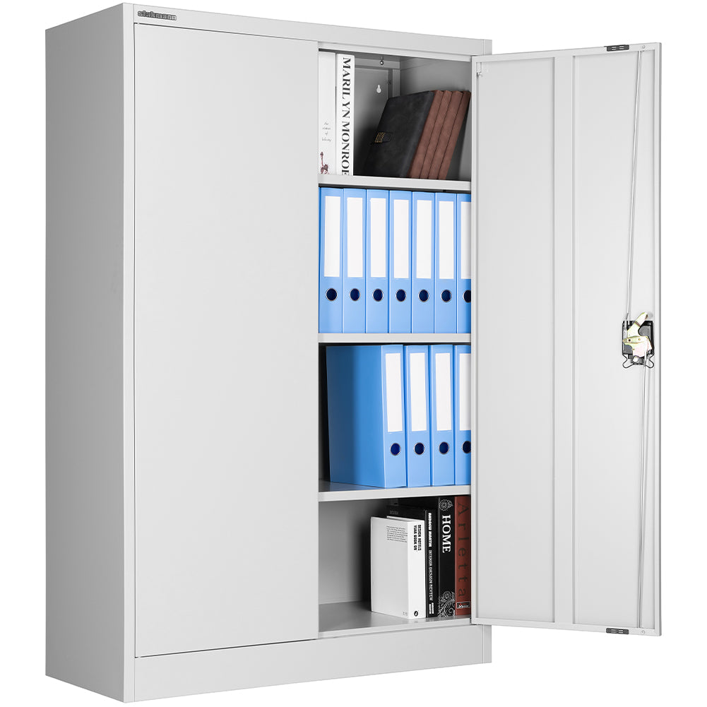 Armadietto Metallico Porta Documenti 2 Ante 90x40x140 cm per Ufficio/Casa in Acciaio Grigio