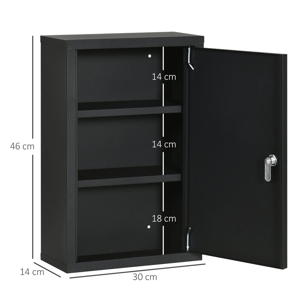 Armadietto per Medicinali 30x14x46 cm 3 Ripiani in Acciaio Nero