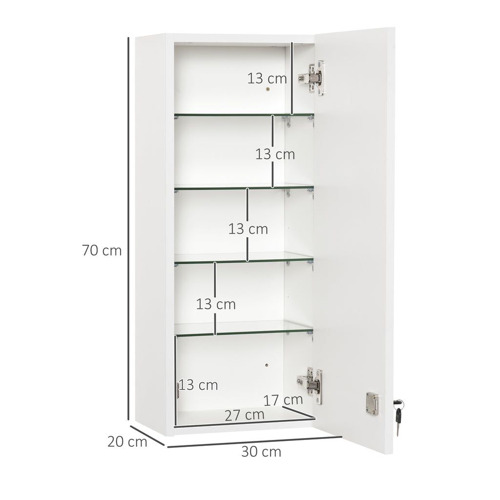 Armoire à Pharmacie 30x20x70 cm avec Serrure en Bois et Verre Blanc