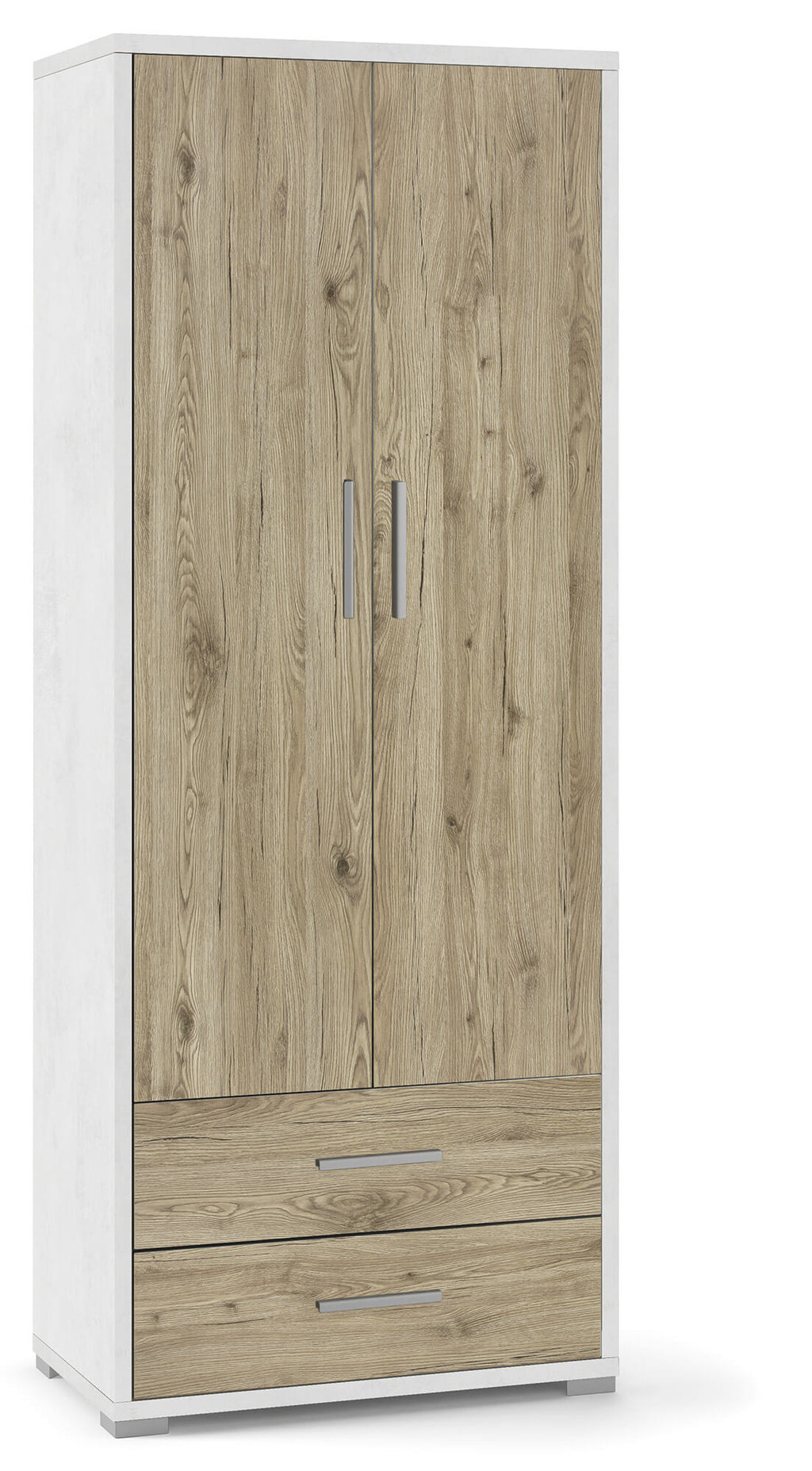 Armoire 2 Portes 2 Tiroirs 71x182x41 cm Oxyde Blanc/Chêne Naturel