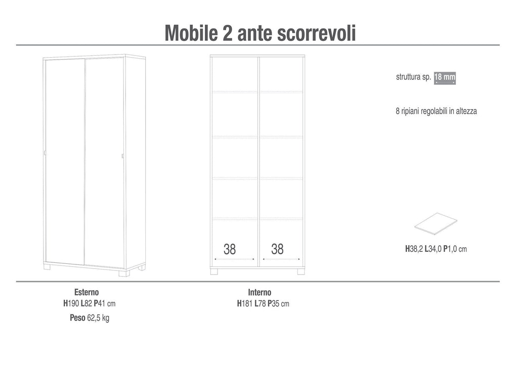 Armoire 2 portes coulissantes 82x190x42 cm Blanc Flammé