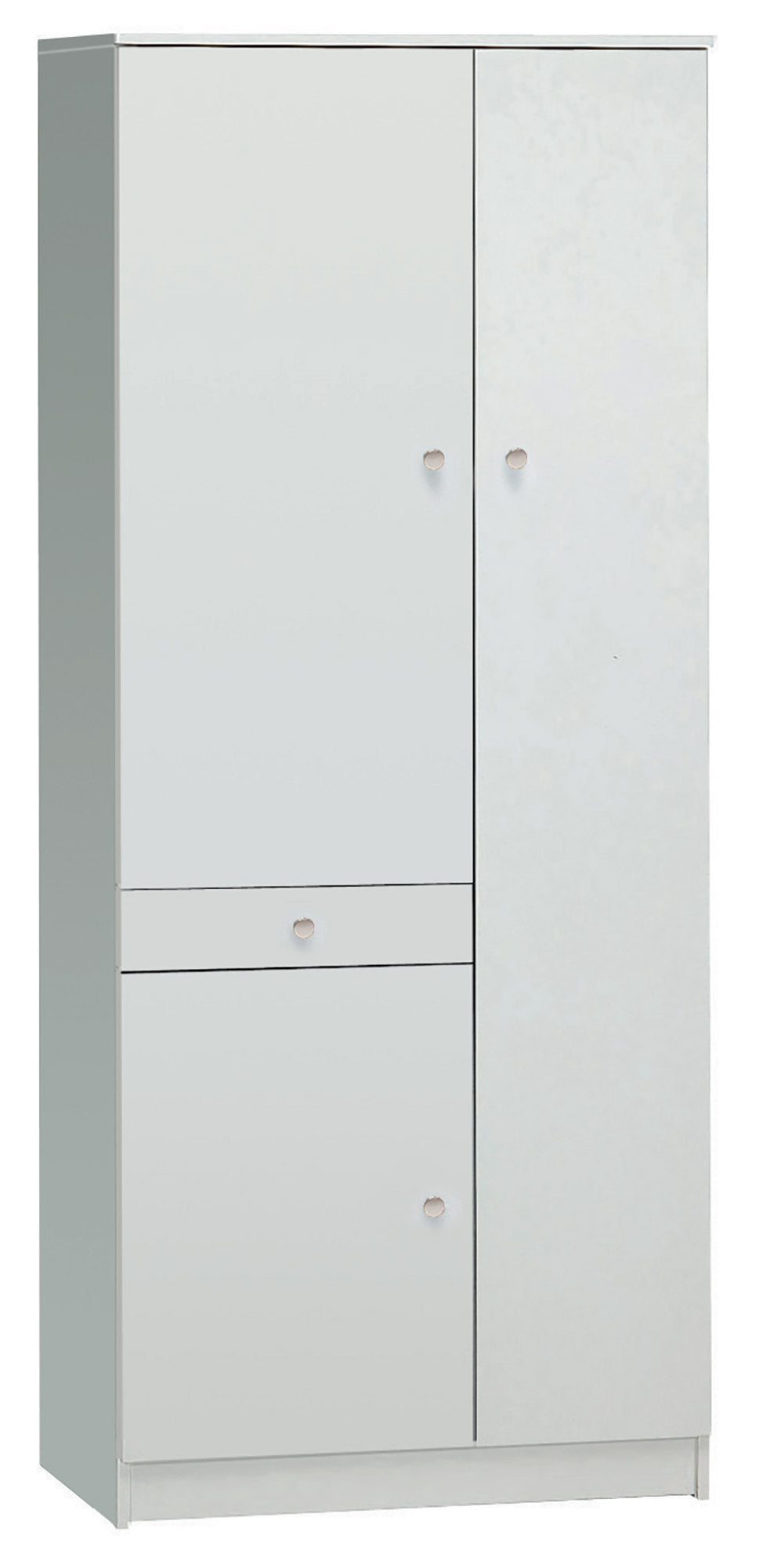 Armoire 3 Portes 1 Tiroir 77x183x34 cm Blanc Lisse