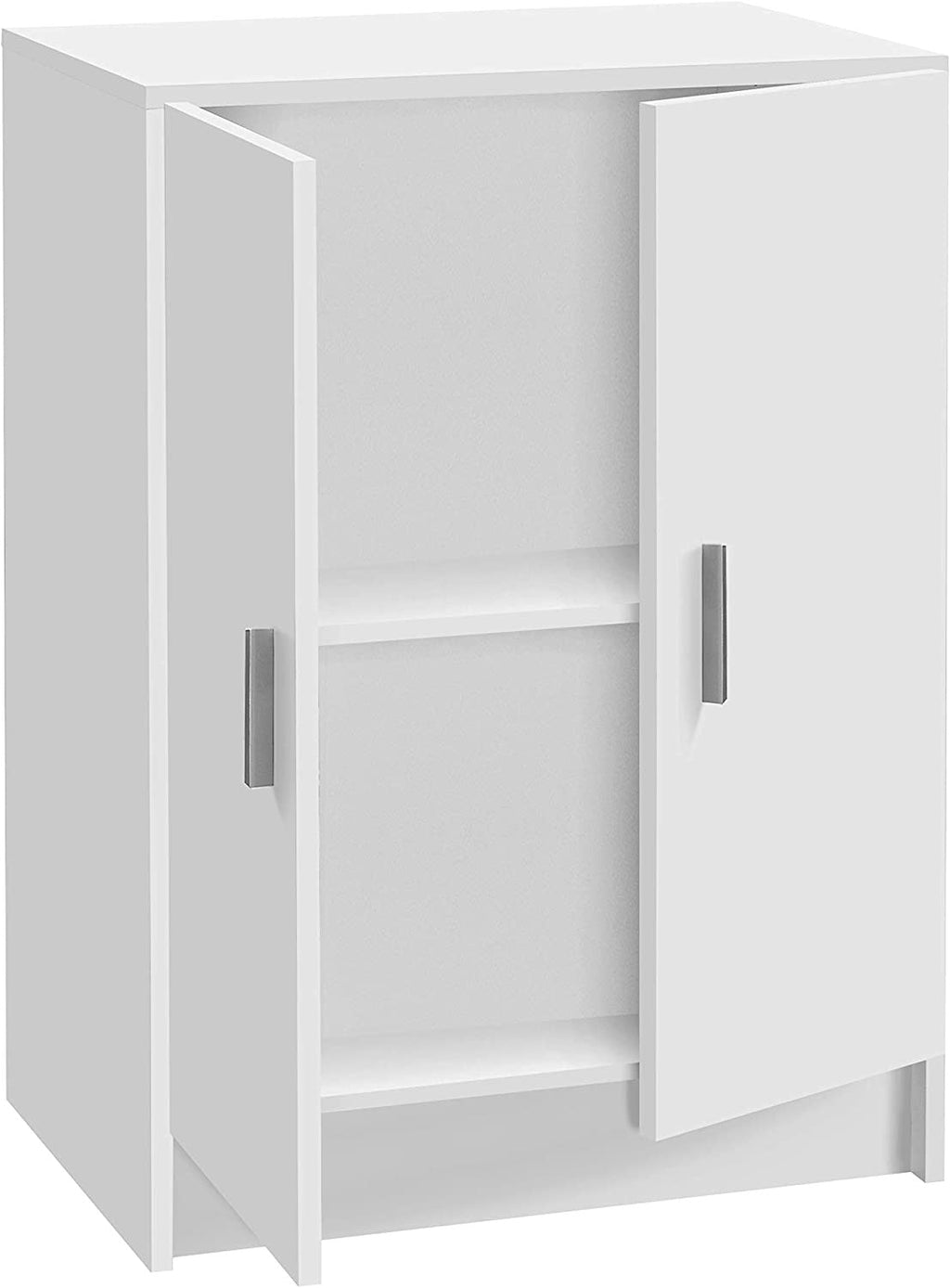Armoire Basse Polyvalente 59x37x80 cm 2 Portes en Bois Blanc