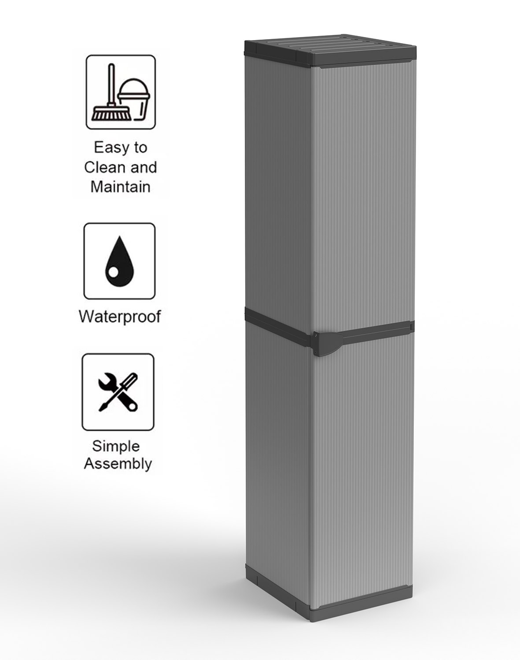 Armoire d'extérieur 68x39,5x168 cm 2 portes 4 étagères en résine grise