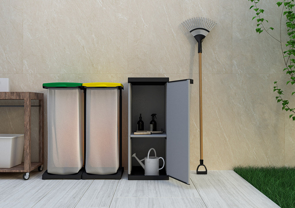 Armoire d'extérieur 34x39,5x85 cm 1 porte 2 étagères en résine grise