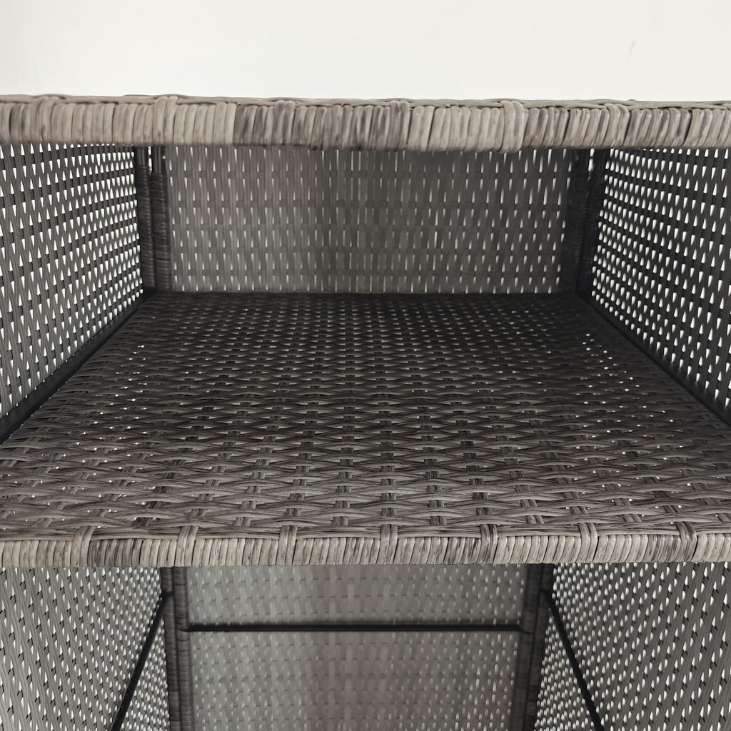 Tieni in ordine con stile i tuoi spazi esterni scegliendo questo armadio da giardino . Rivestito con rattan PE e realizzato con un solido telaio in acciaio, questo armadio da esterno offre 2 pratici vani in cui riporre in modo ordinato ogni oggetto. Perfetto da usare a bordo piscina, in cortile, sul terrazzo e anche in casa, questo mobile in rattan porterà praticità ed eleganza in ogni spazio.