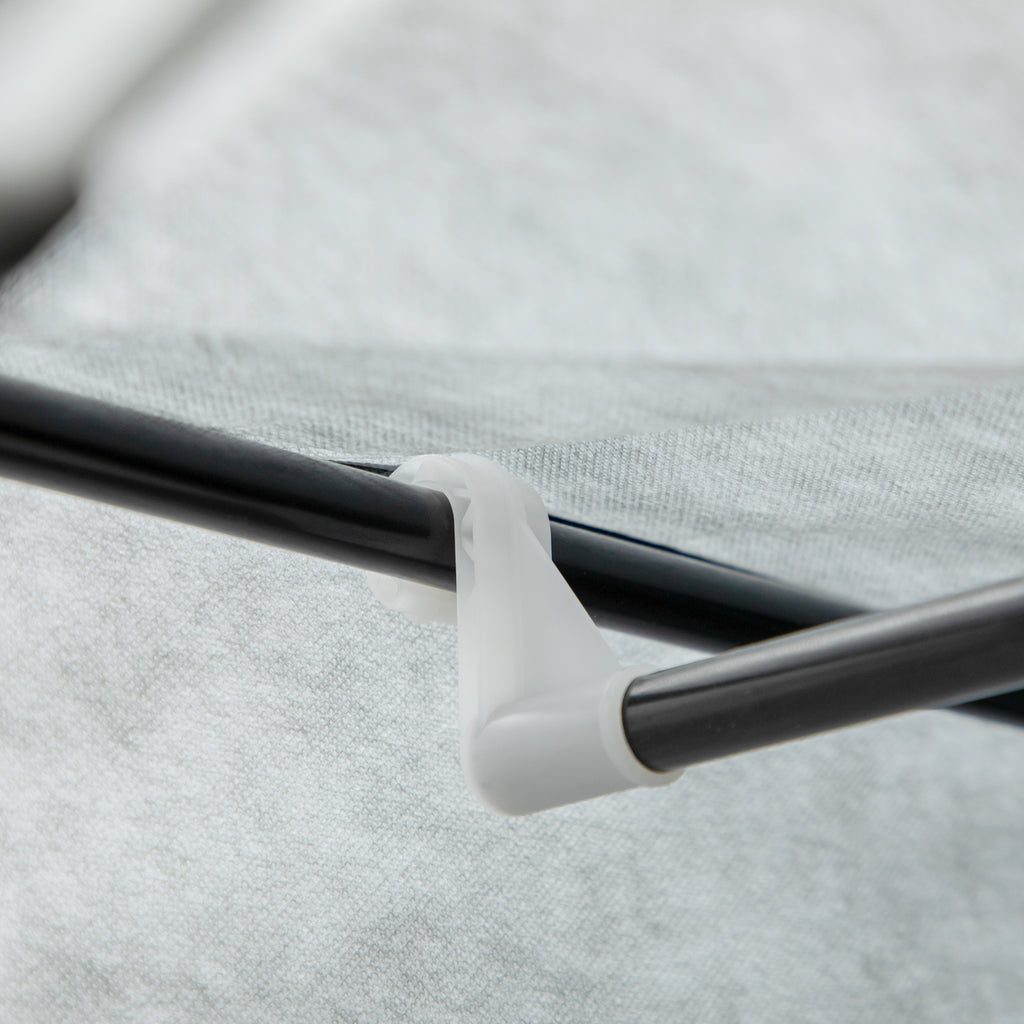 - Ripiani in tessuto appositamente trattati per garantire stabilità e facilità di pulizia, connettori in PP e struttura in acciaio per dare stabilità