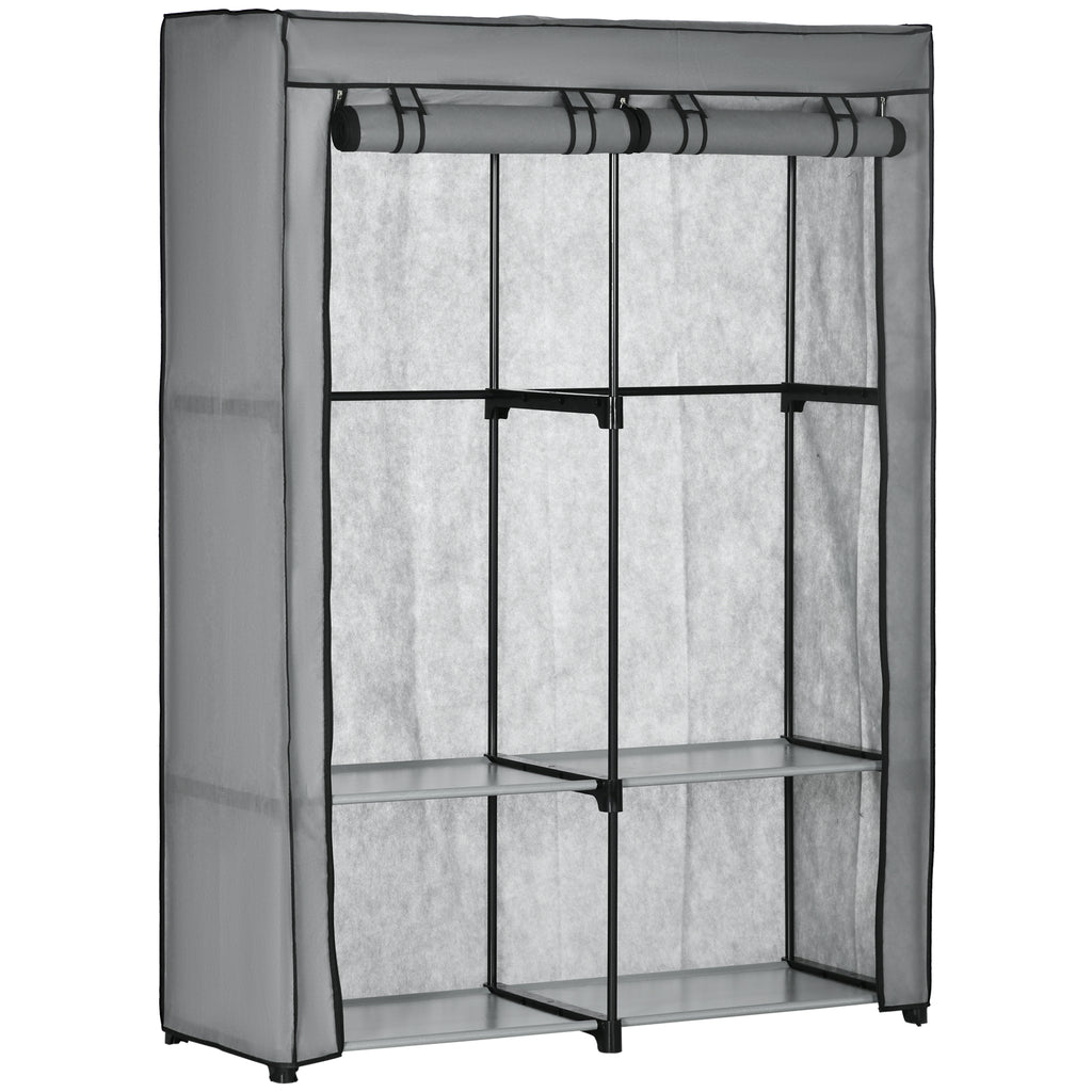 Armadio Guardaroba da Campeggio 118x49x170 cm 4 Ripiani Aperti e 2 Appendini in Tessuto non Tessuto Grigio