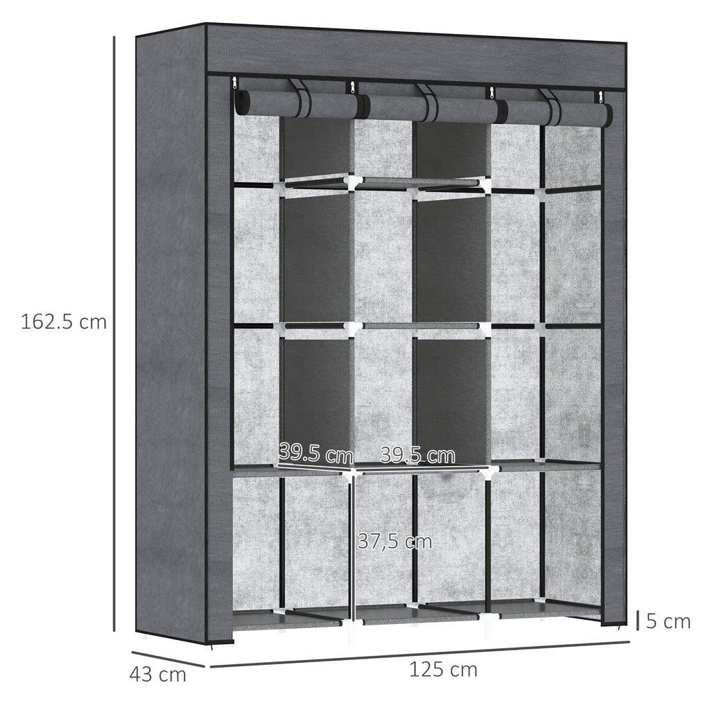 Armadio Guardaroba da Campeggio 125x43x162,5 cm con 8 Ripiani e 2 Barre Grigio Carbone