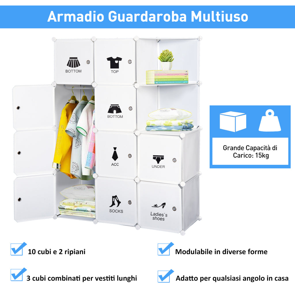 Armoire Modulable 10 Cubes Blanc 111x47x145 cm