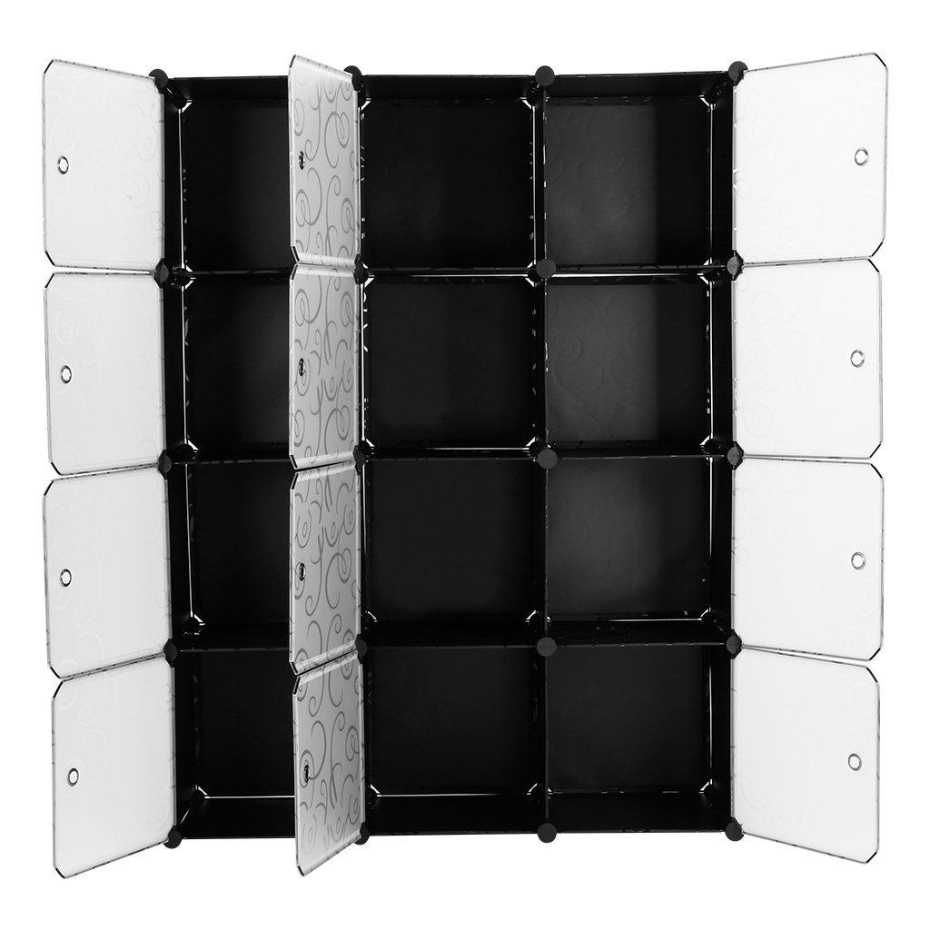 Armoire Modulable 12 Cubes 112x37x148 cm Rizzetti Noir avec Broderie